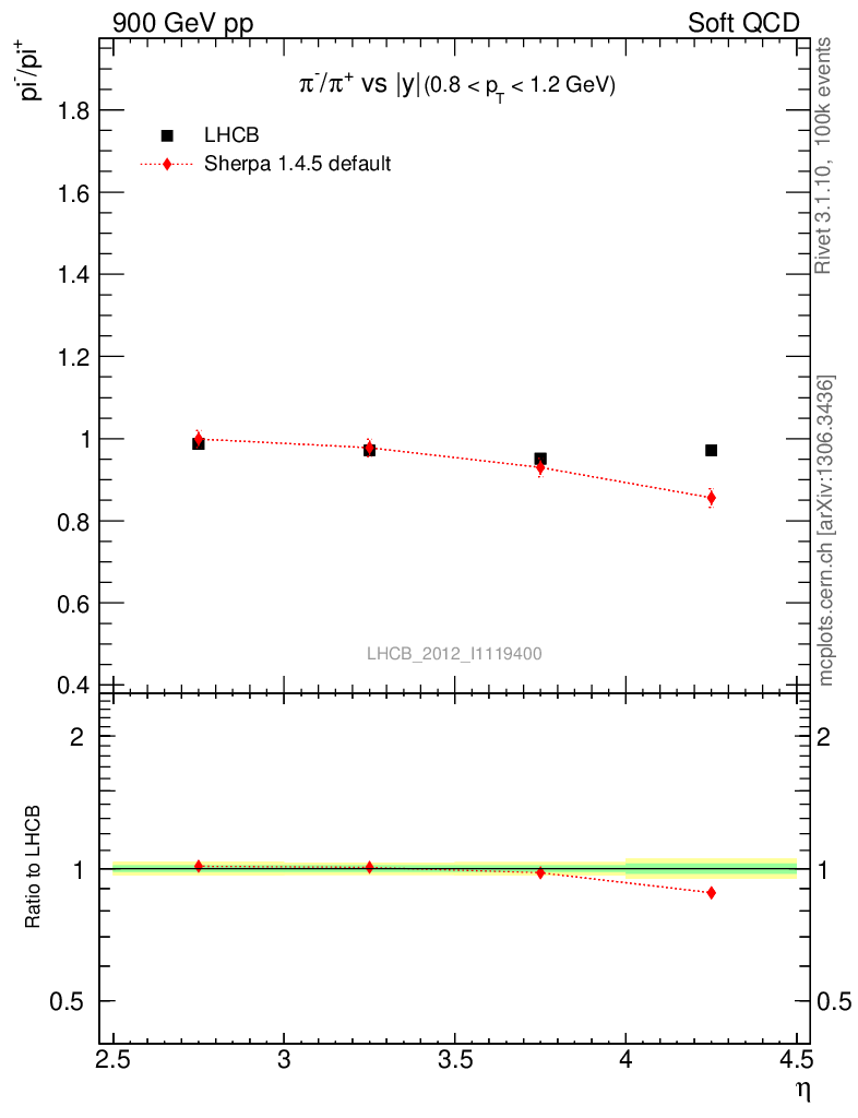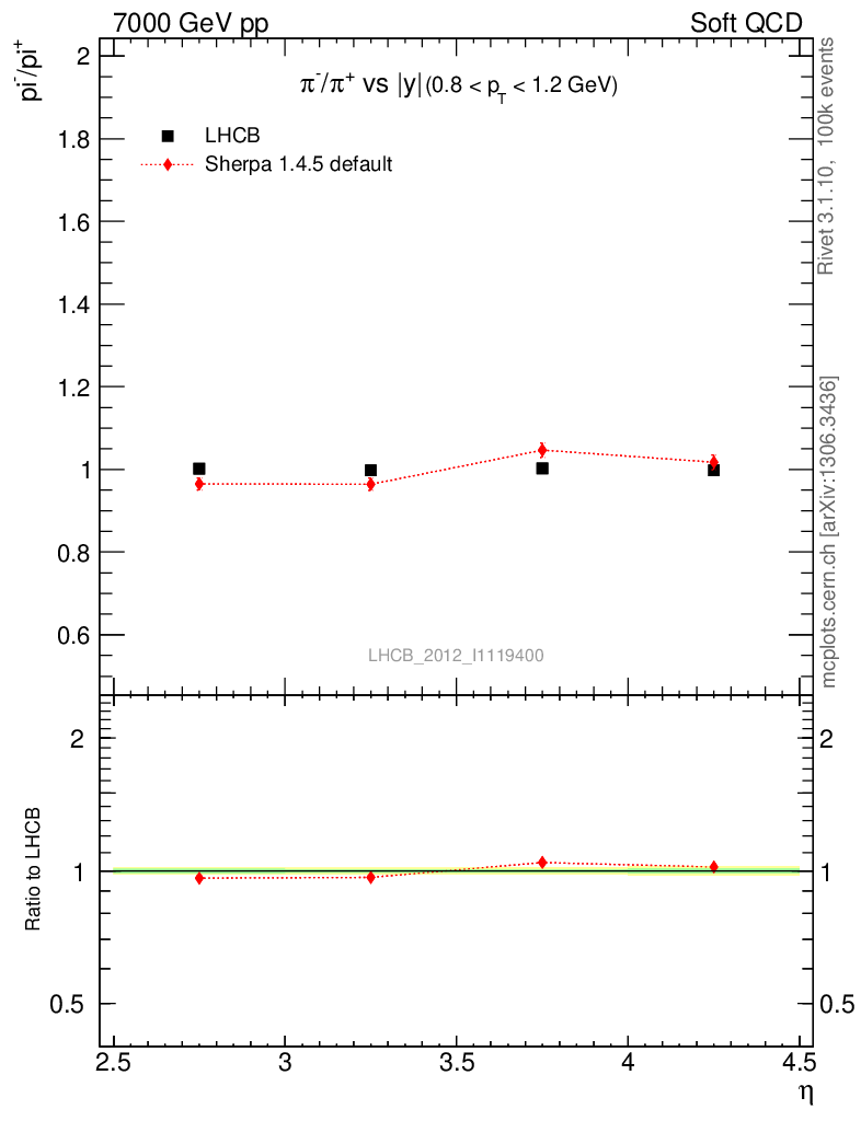 Soft QCD (inelastic) : Identified Particles : Ratios : π-/π+ vs |y|