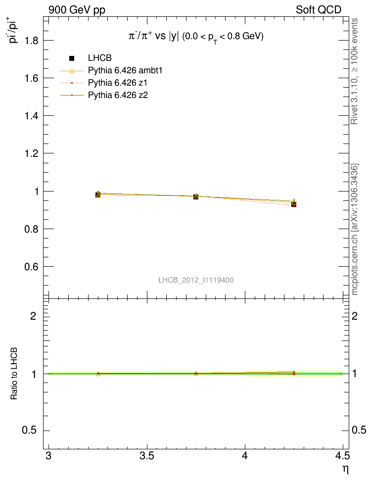 Soft QCD (inelastic) : Identified Particles : Ratios : π-/π+ vs |y|