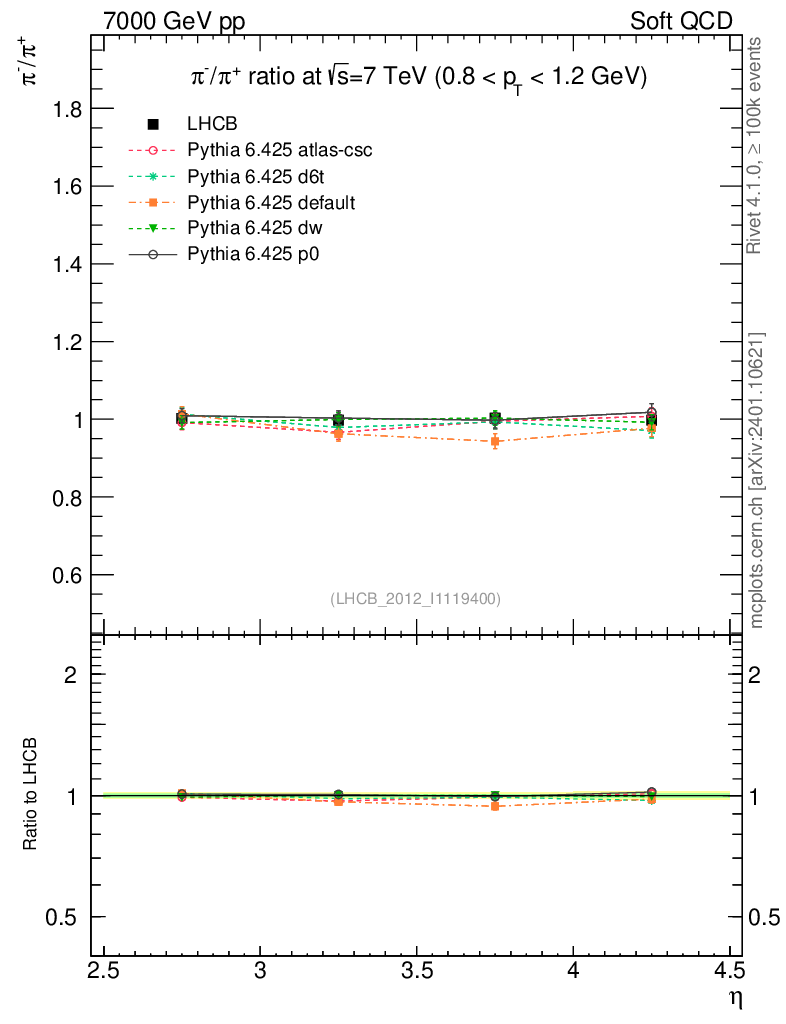 Soft QCD (inelastic) : Identified Particles : Ratios : π-/π+ vs |y|