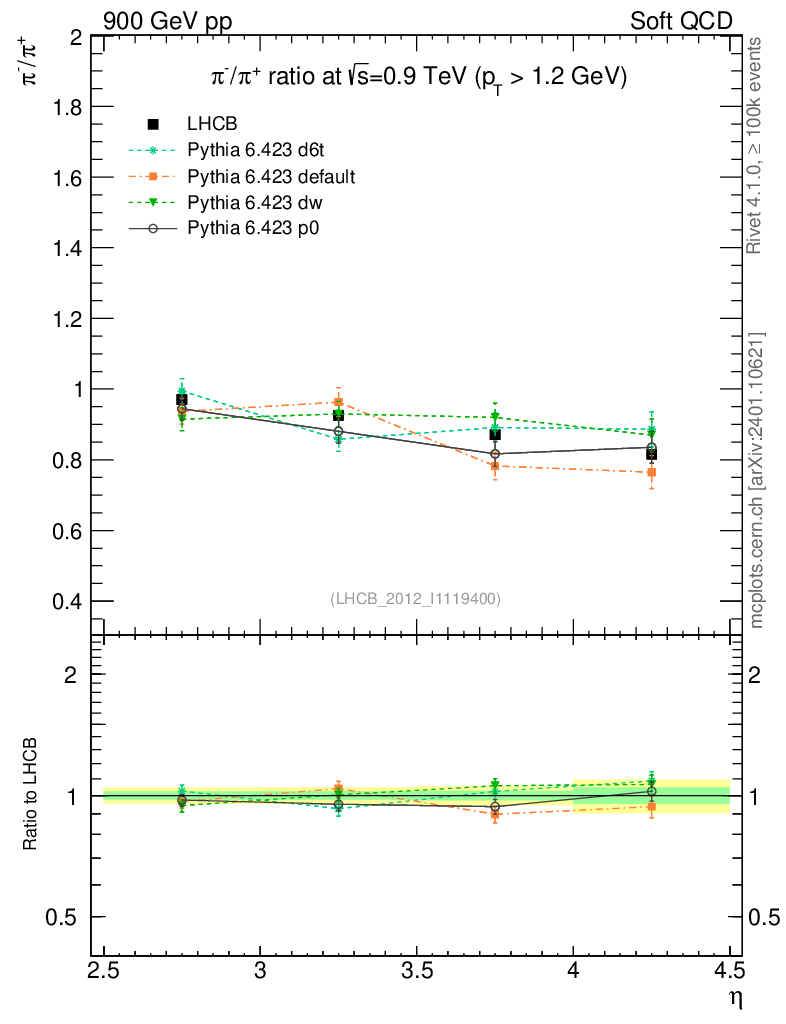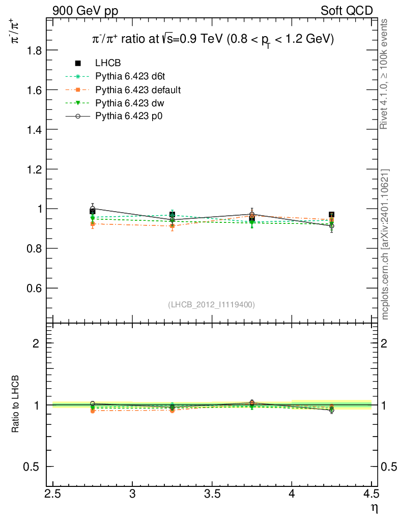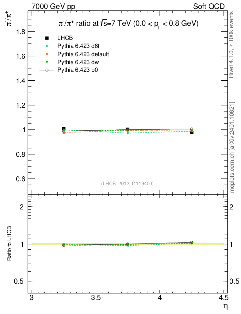 Soft QCD (inelastic) : Identified Particles : Ratios : π-/π+ vs |y|