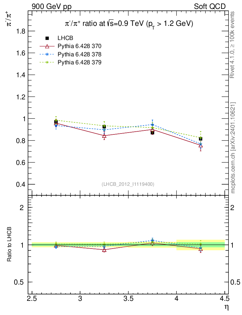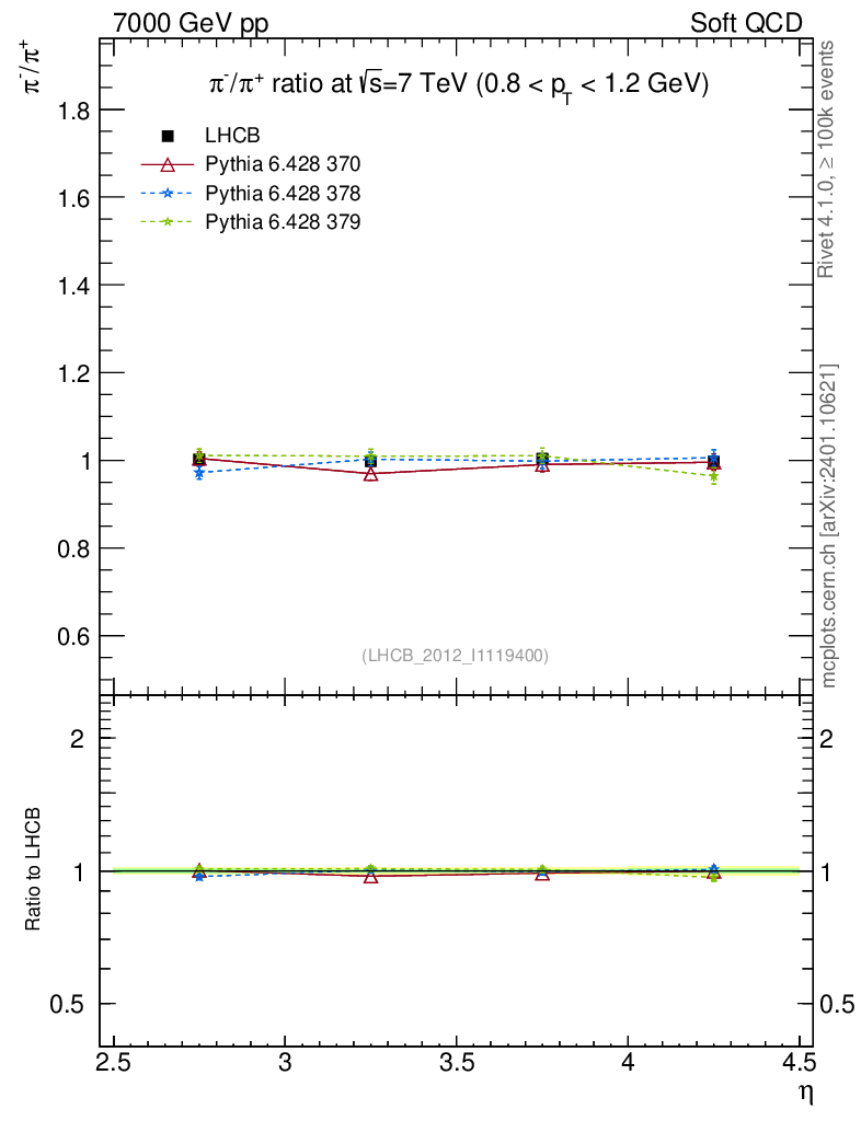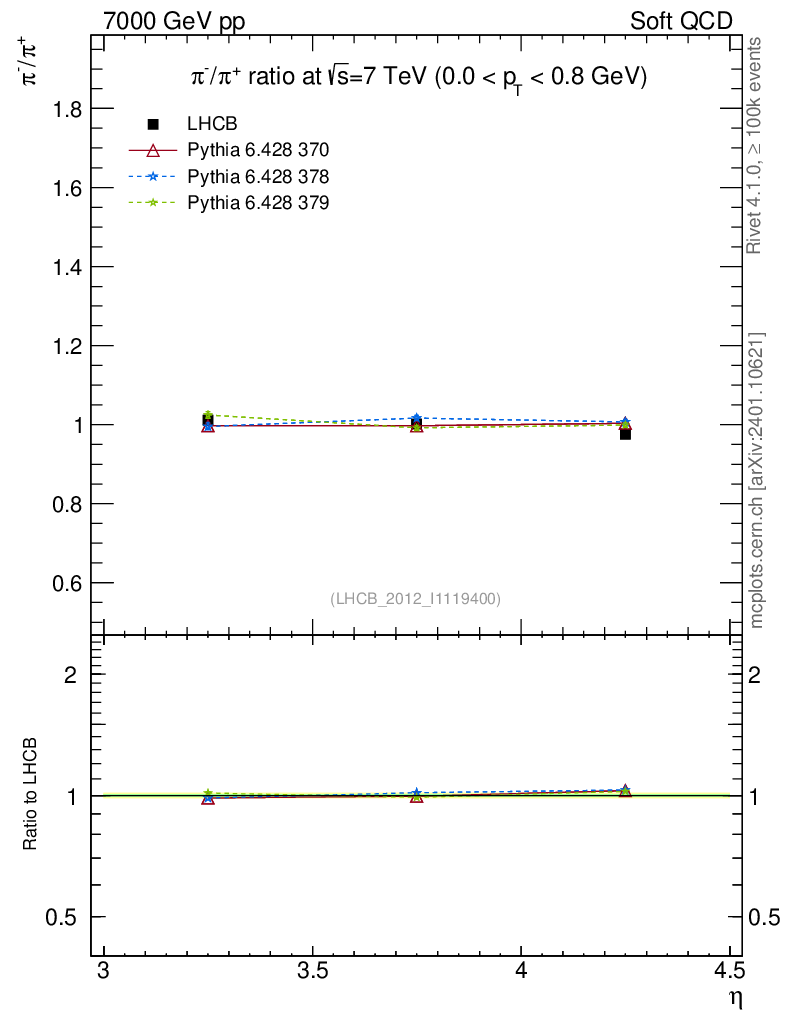 Soft QCD (inelastic) : Identified Particles : Ratios : π-/π+ vs |y|