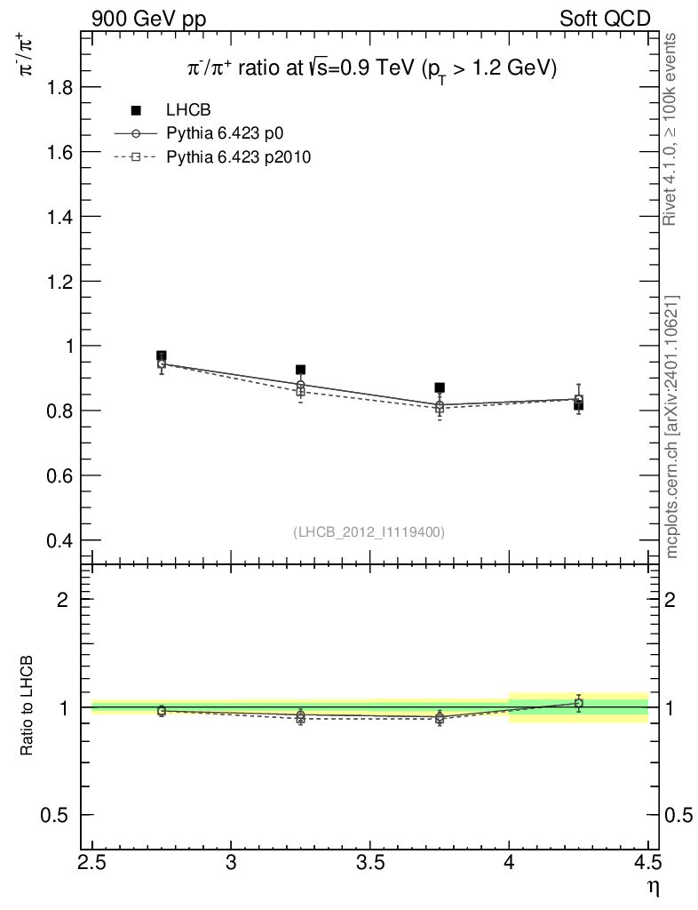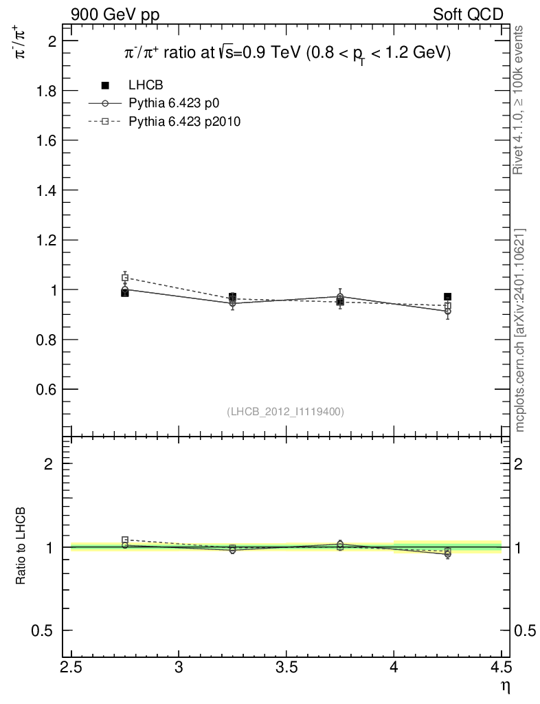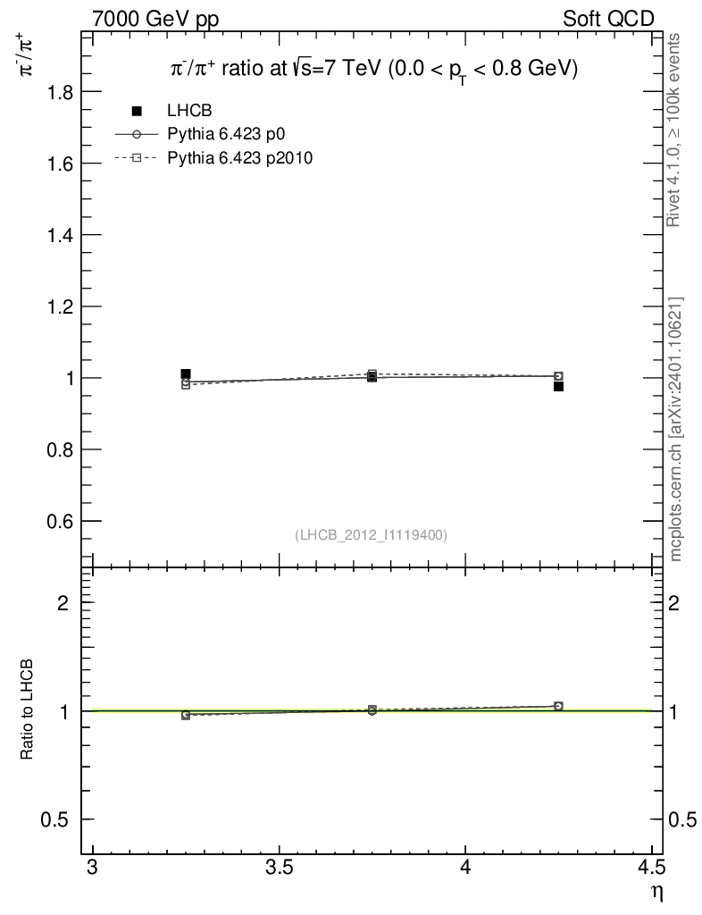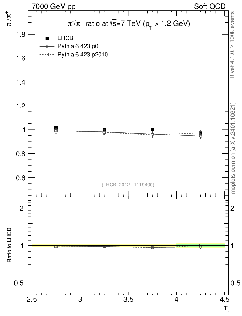 Soft QCD (inelastic) : Identified Particles : Ratios : π-/π+ vs |y|