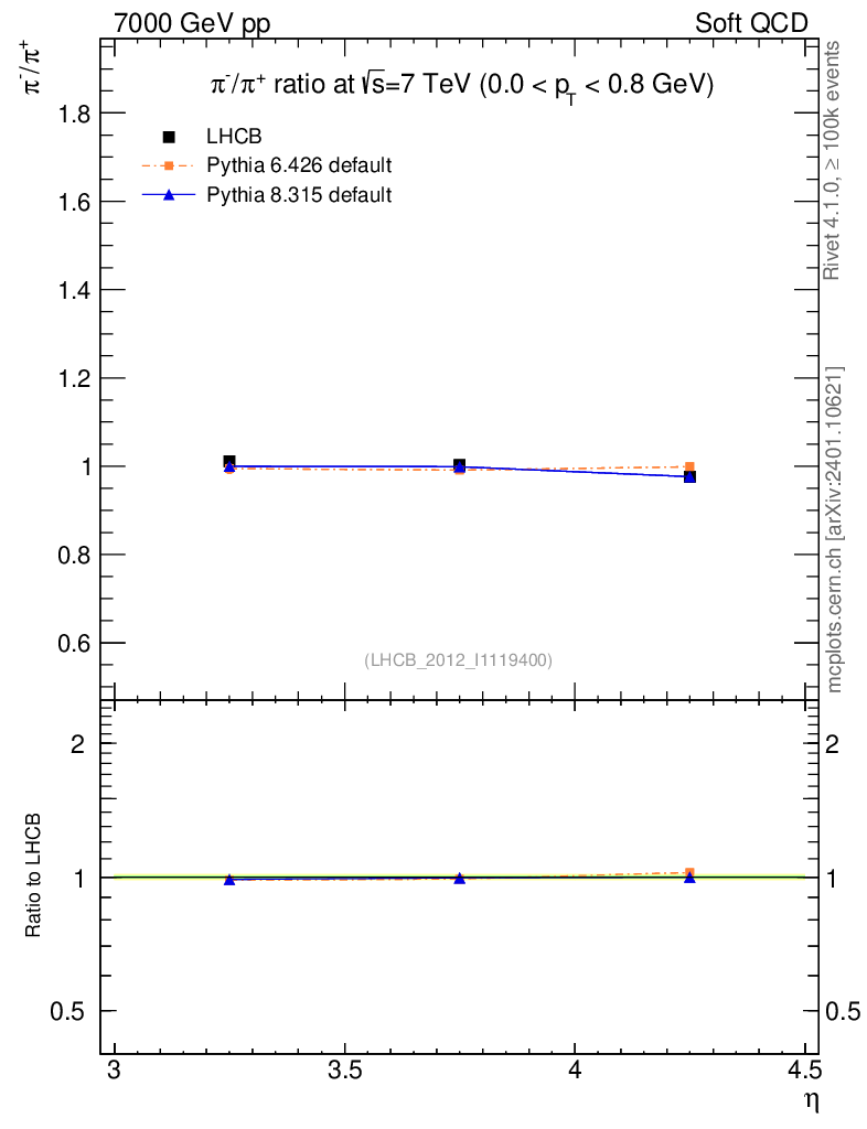 Soft QCD (inelastic) : Identified Particles : Ratios : π-/π+ vs |y|