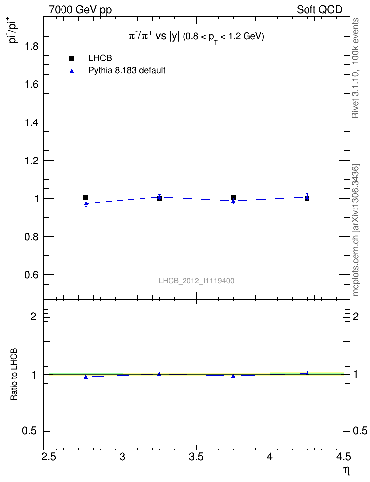 Soft QCD (inelastic) : Identified Particles : Ratios : π-/π+ vs |y|