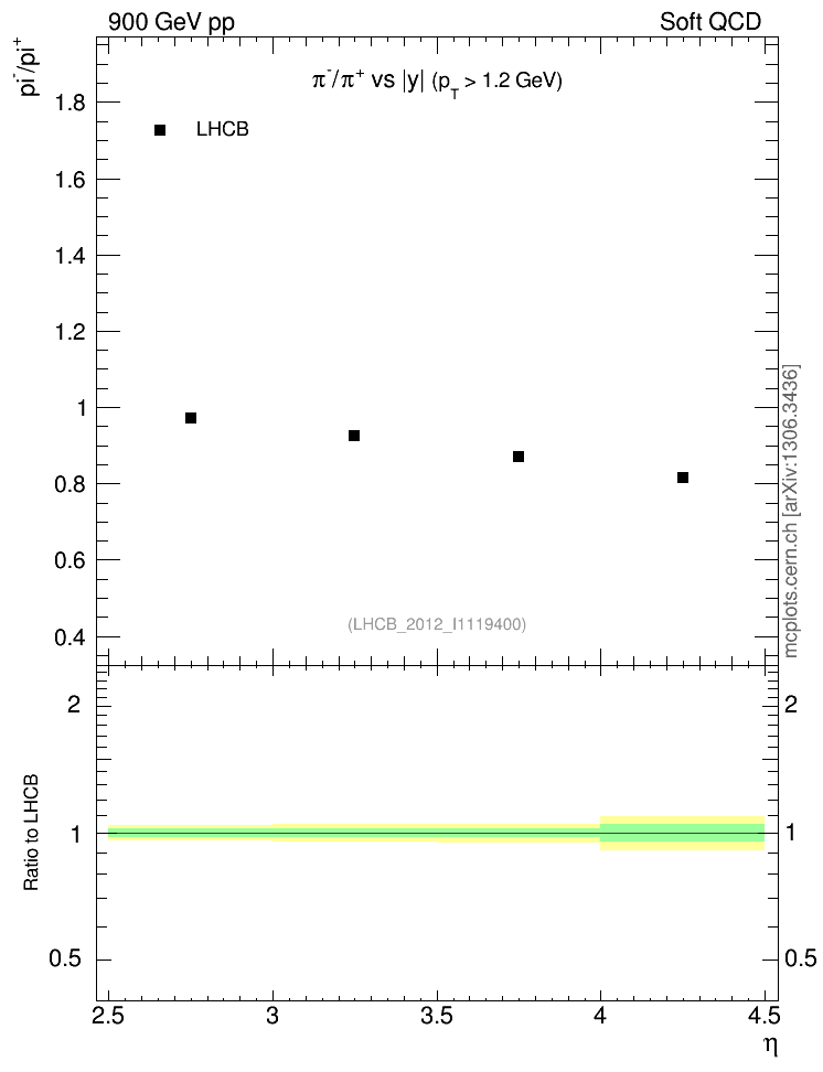 Soft QCD (inelastic) : Identified Particles : Ratios : π-/π+ vs |y|
