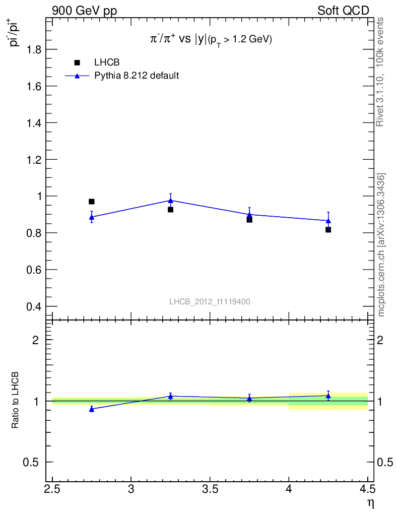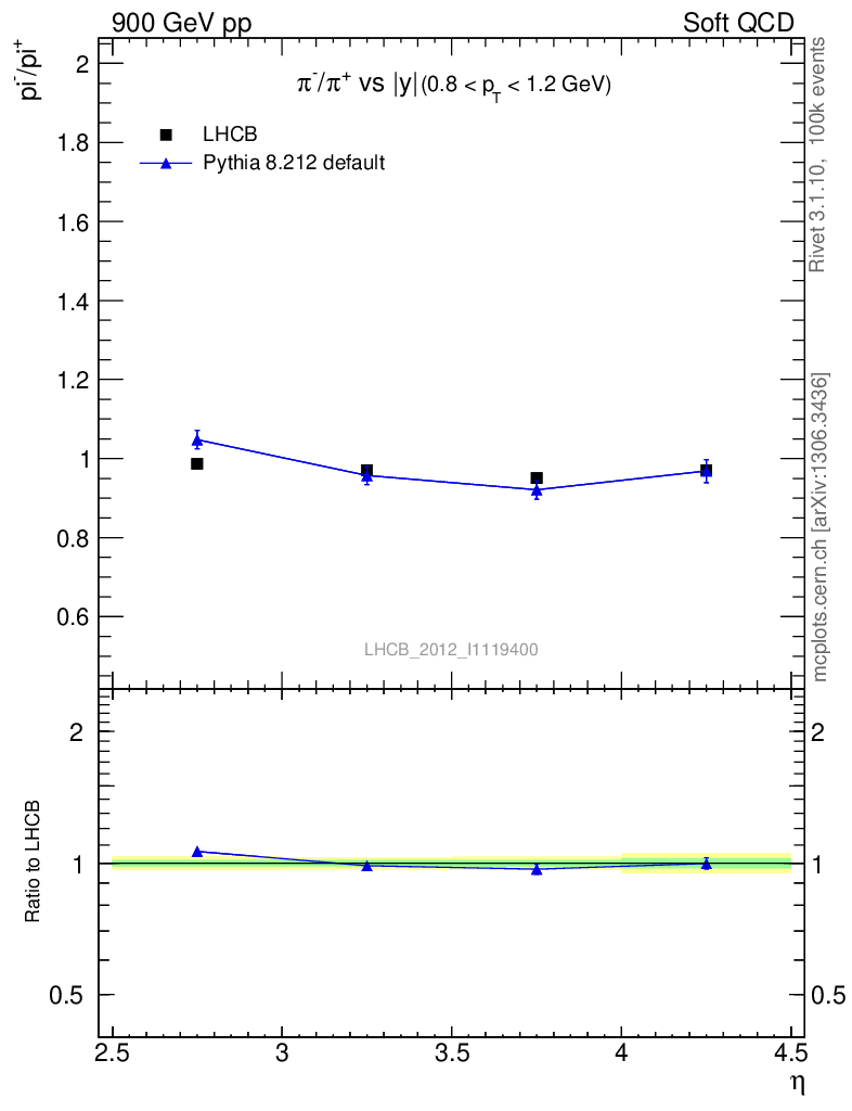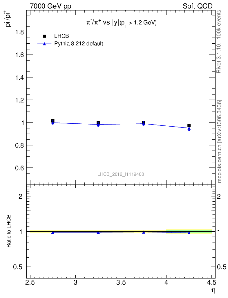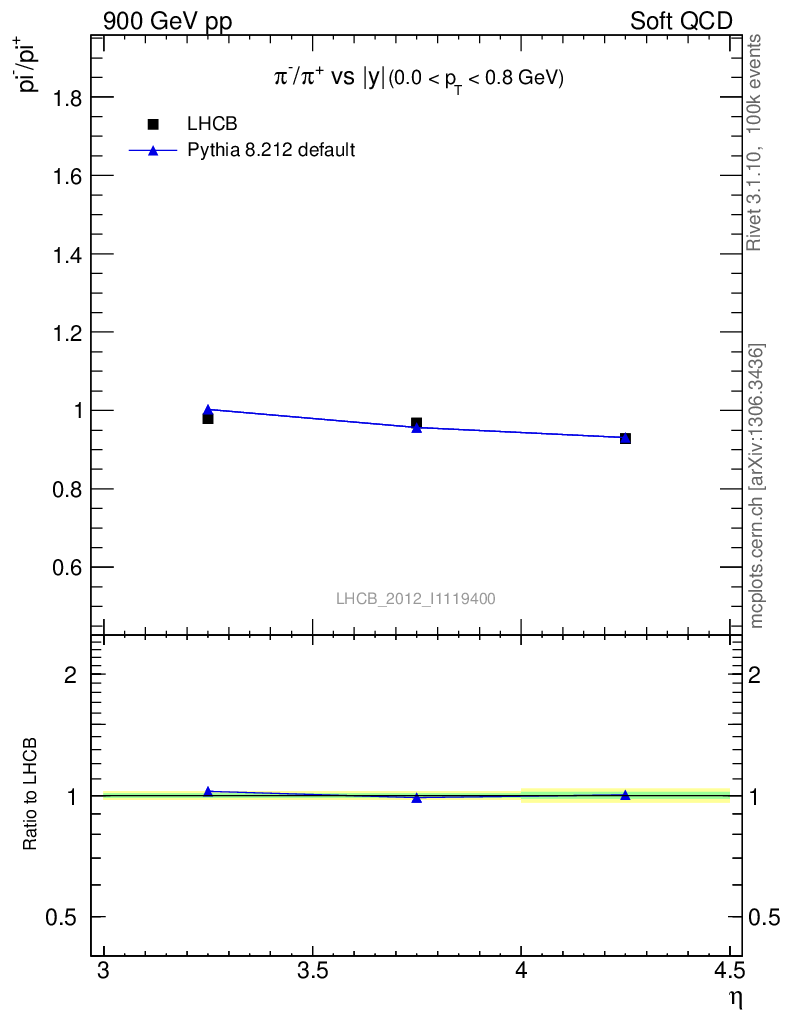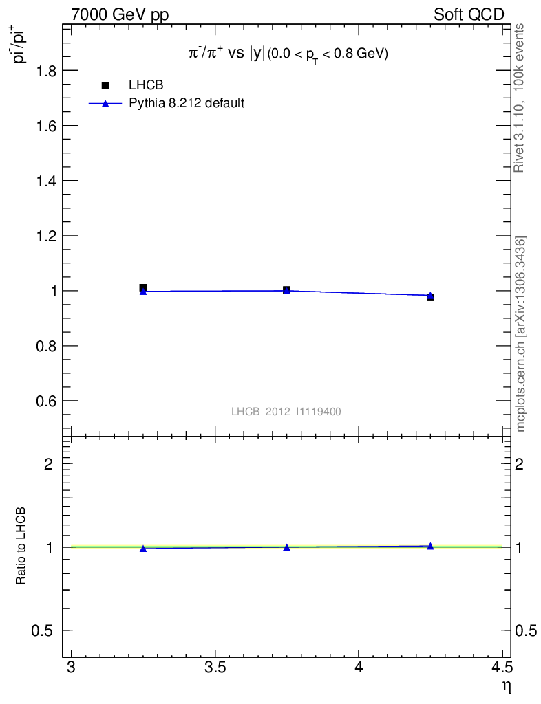 Soft QCD (inelastic) : Identified Particles : Ratios : π-/π+ vs |y|