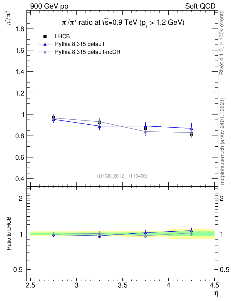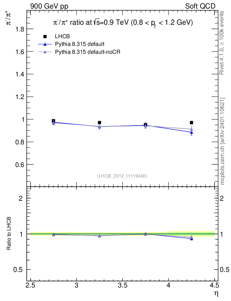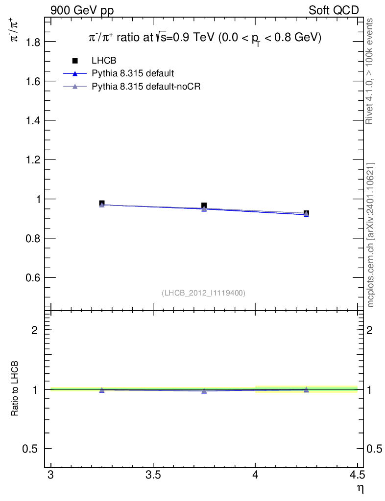 Soft QCD (inelastic) : Identified Particles : Ratios : π-/π+ vs |y|