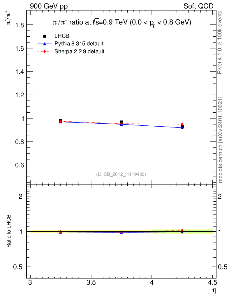Soft QCD (inelastic) : Identified Particles : Ratios : π-/π+ vs |y|