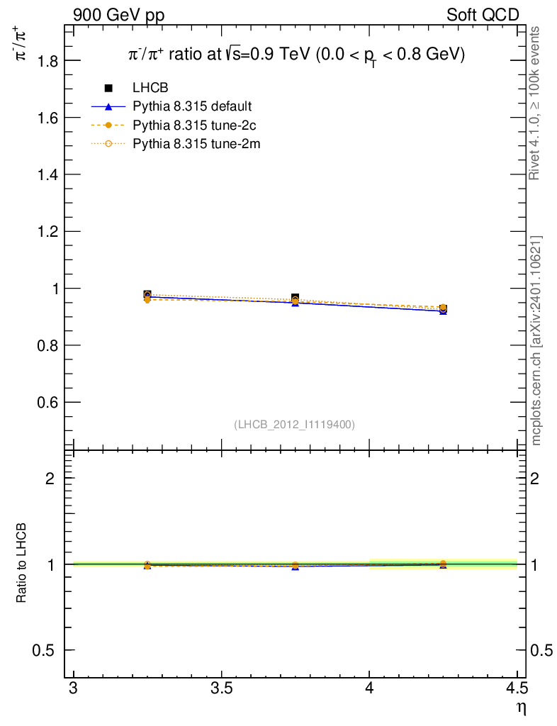 Soft QCD (inelastic) : Identified Particles : Ratios : π-/π+ vs |y|