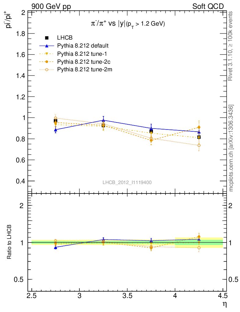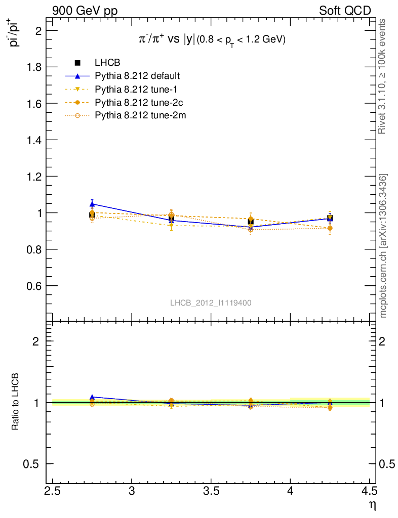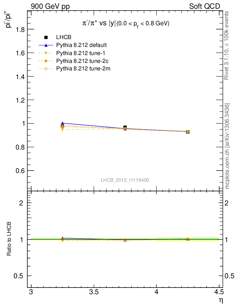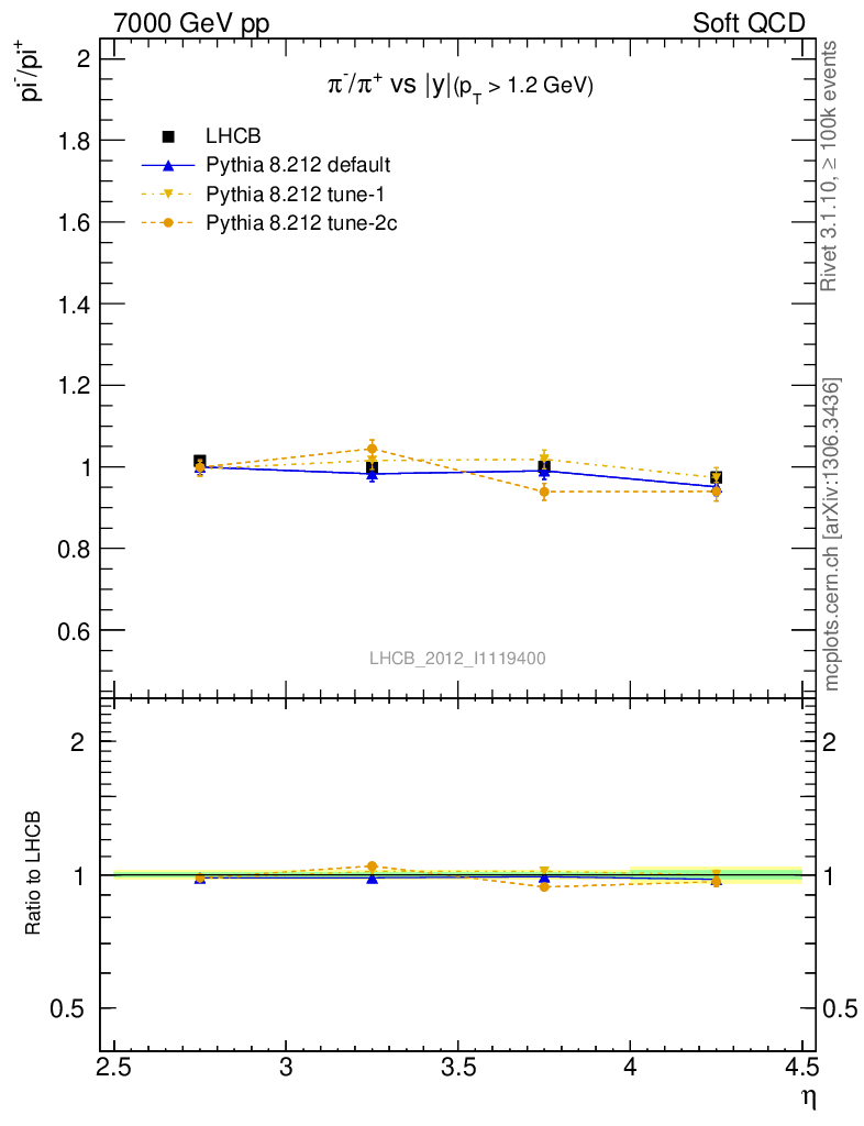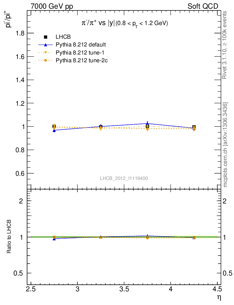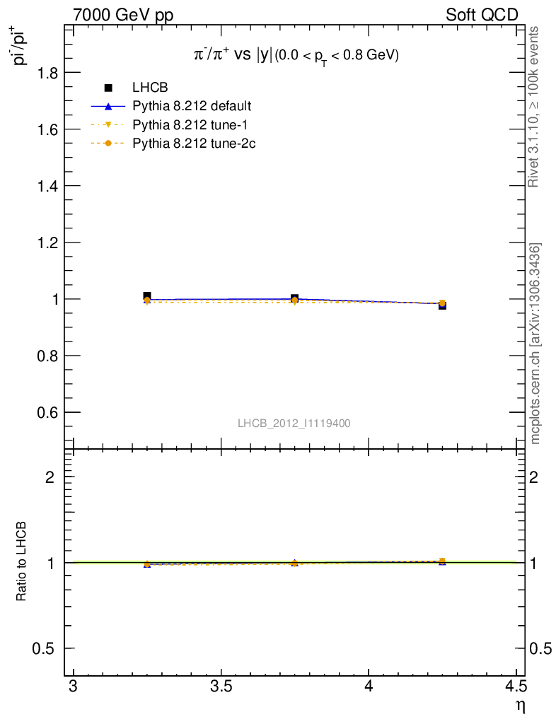 Soft QCD (inelastic) : Identified Particles : Ratios : π-/π+ vs |y|