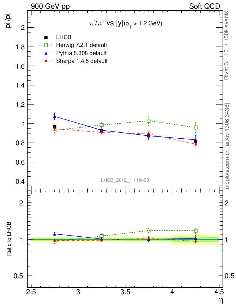 Soft QCD (inelastic) : Identified Particles : Ratios : π-/π+ vs |y|