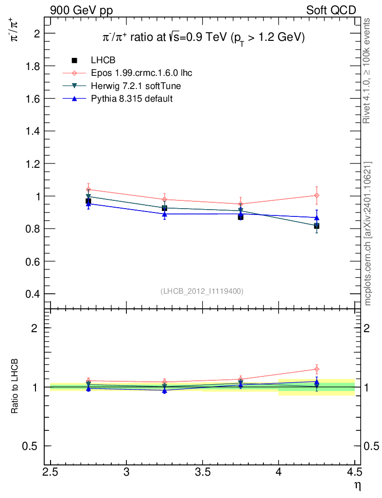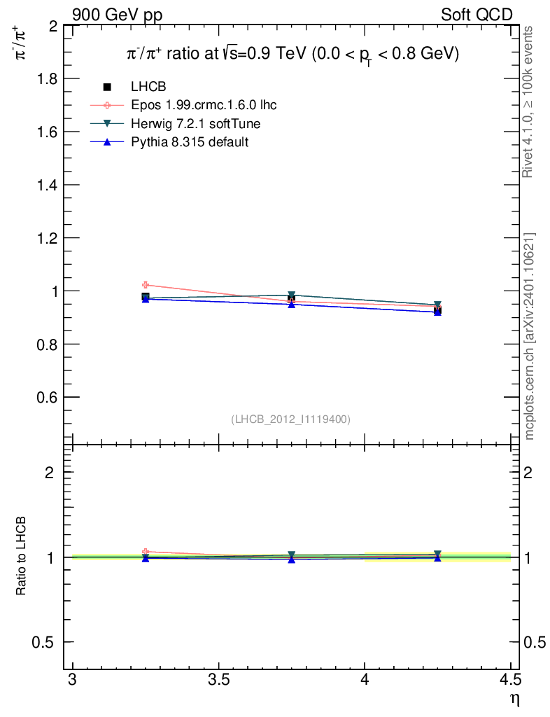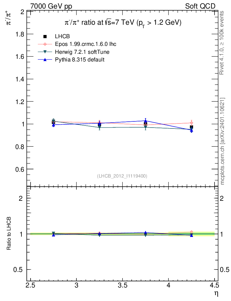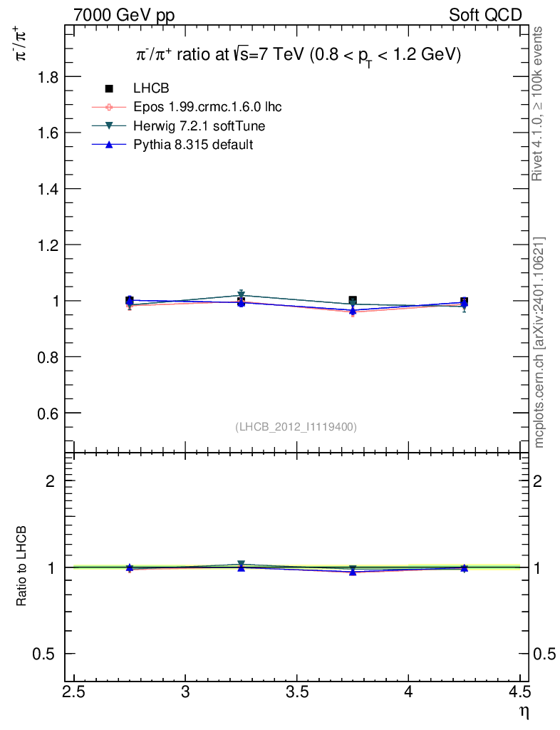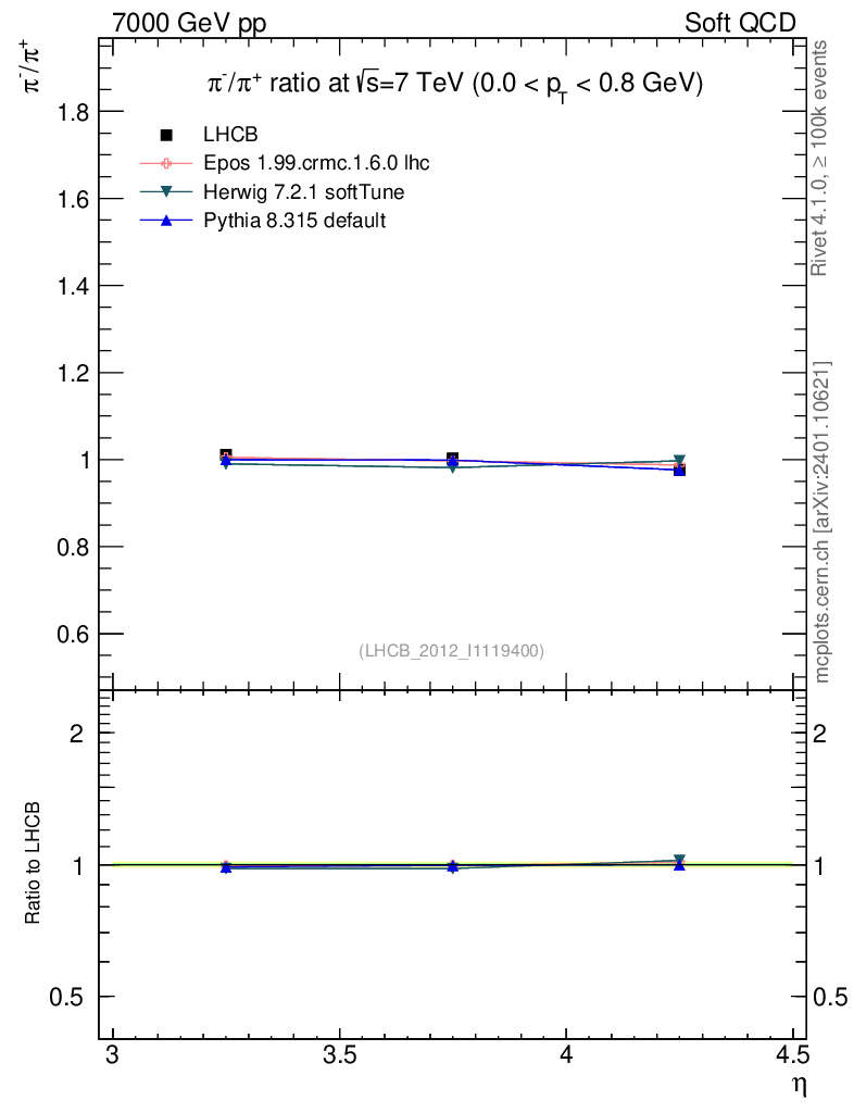 Soft QCD (inelastic) : Identified Particles : Ratios : π-/π+ vs |y|