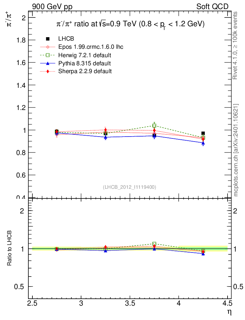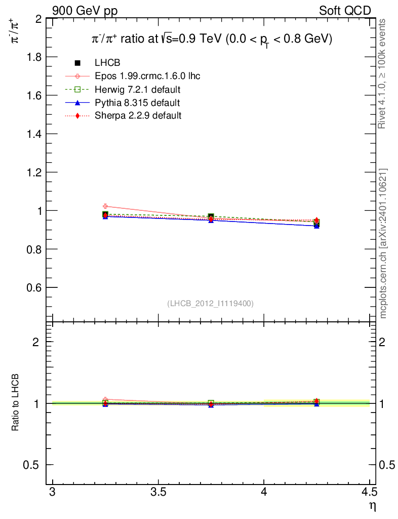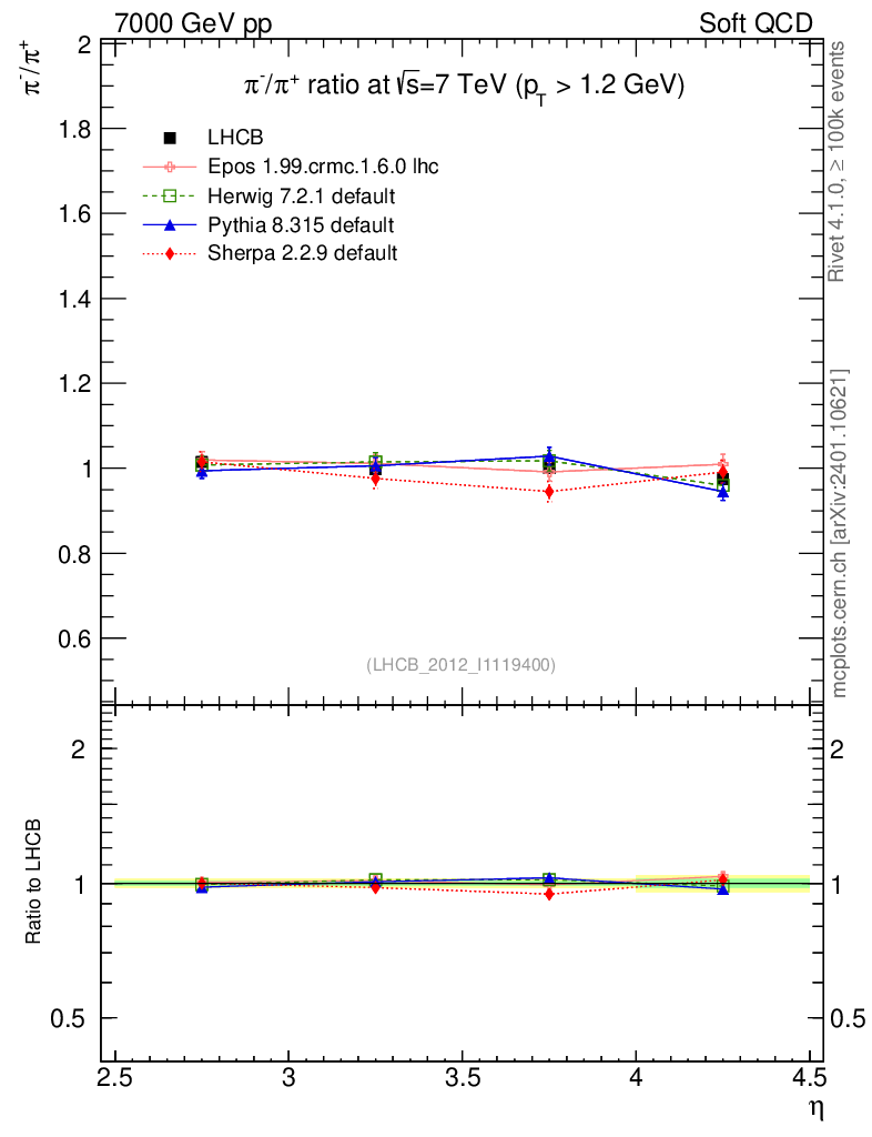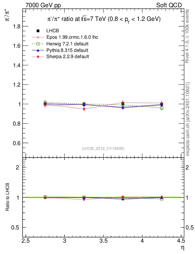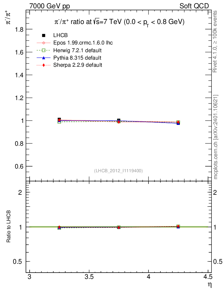 Soft QCD (inelastic) : Identified Particles : Ratios : π-/π+ vs |y|