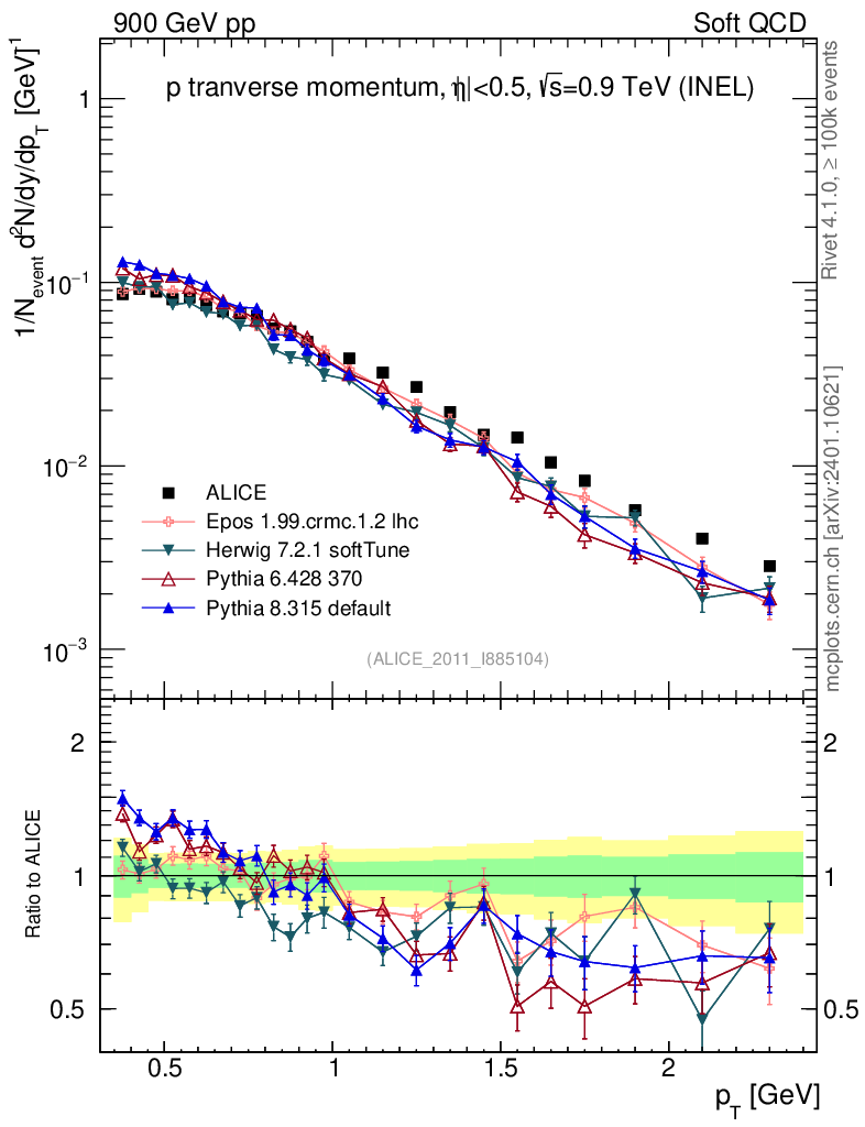Soft QCD (inelastic) : Identified Particles : pT : p