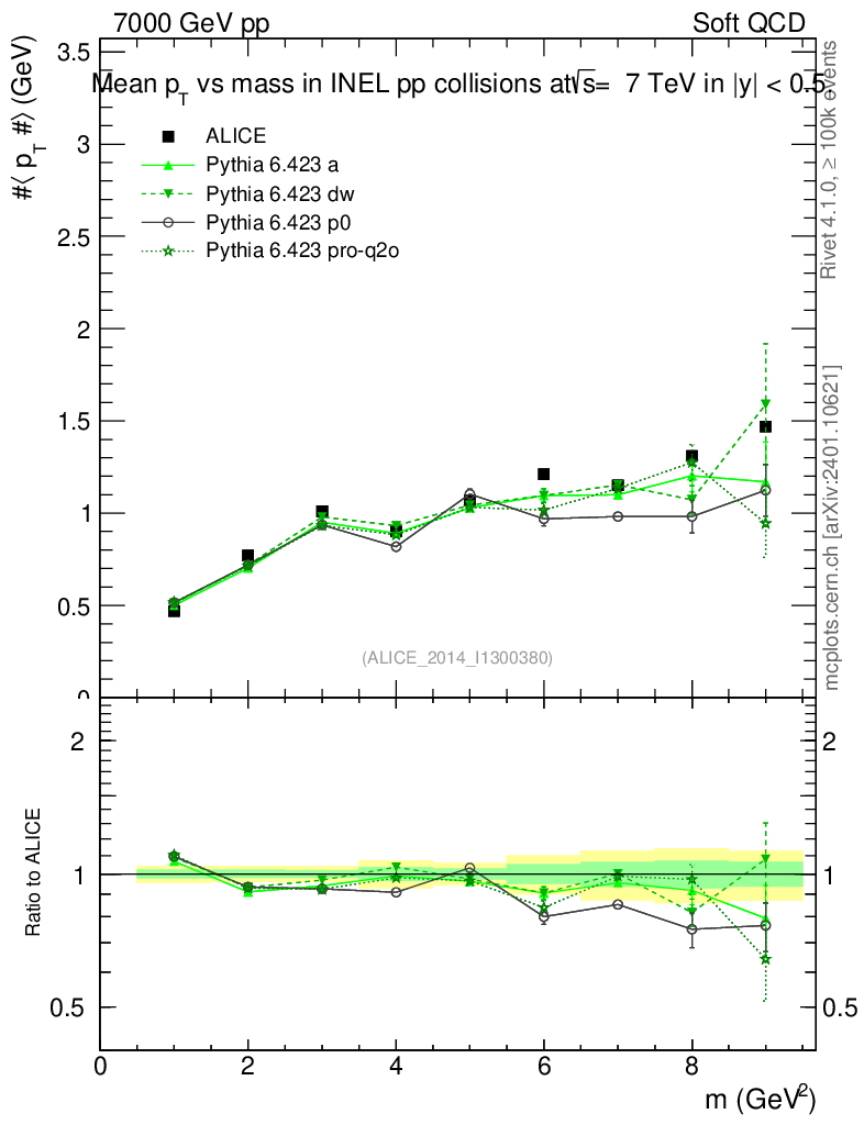 Soft QCD (inelastic) : <pT> vs mass