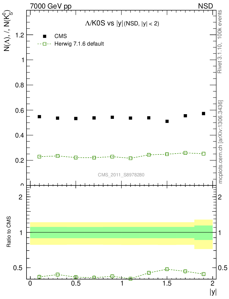 Soft QCD (nsd only) : Identified Particles : Ratios : Λ/K0S vs |y|