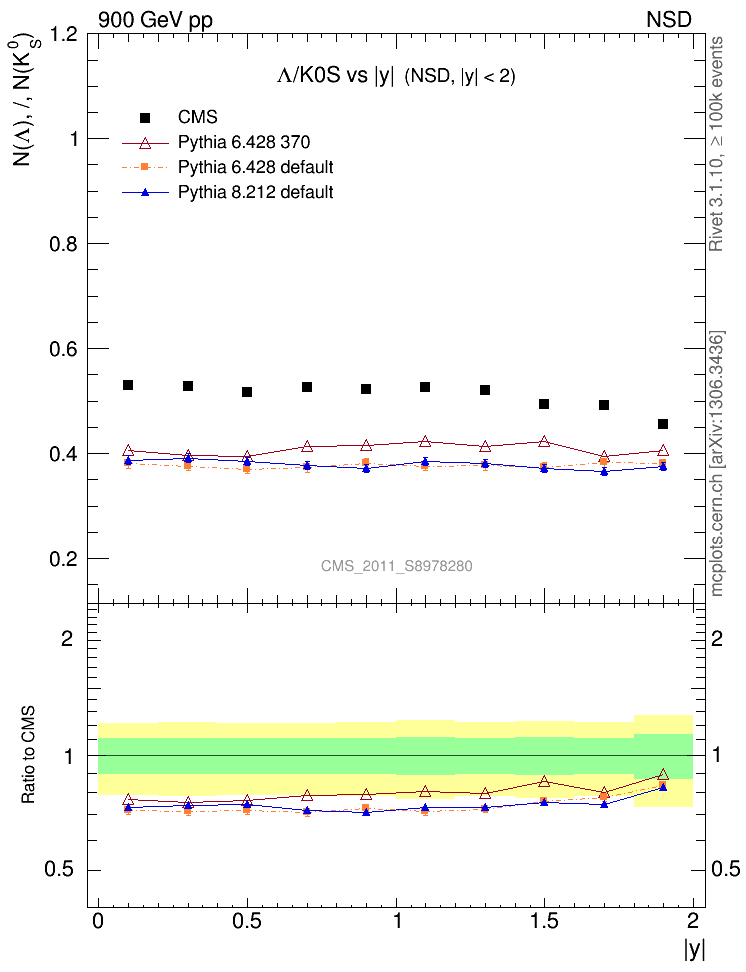 Soft QCD (nsd only) : Identified Particles : Ratios : Λ/K0S vs |y|