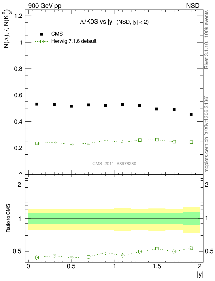 Soft QCD (nsd only) : Identified Particles : Ratios : Λ/K0S vs |y|