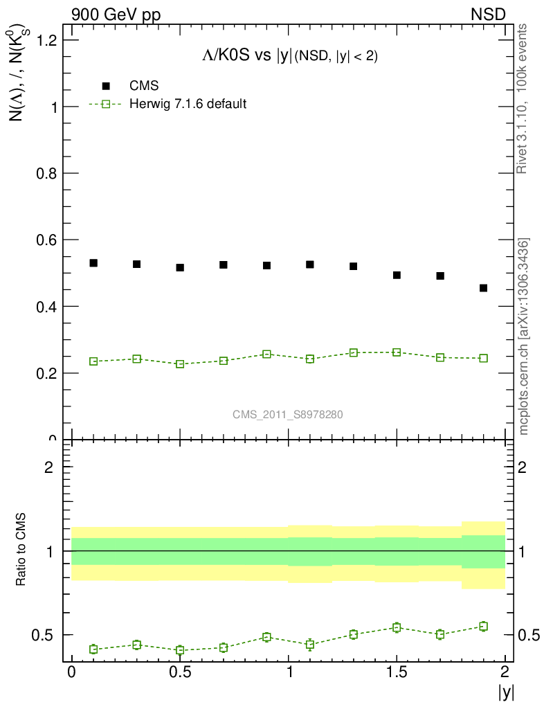 Soft QCD (nsd only) : Identified Particles : Ratios : Λ/K0S vs |y|