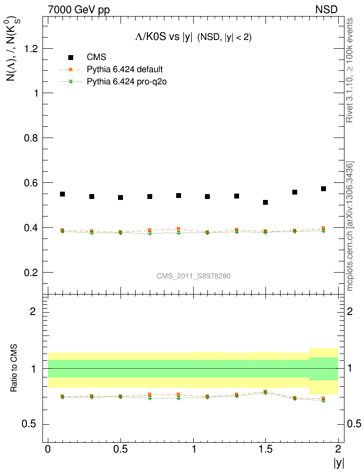 Soft QCD (nsd only) : Identified Particles : Ratios : Λ/K0S vs |y|