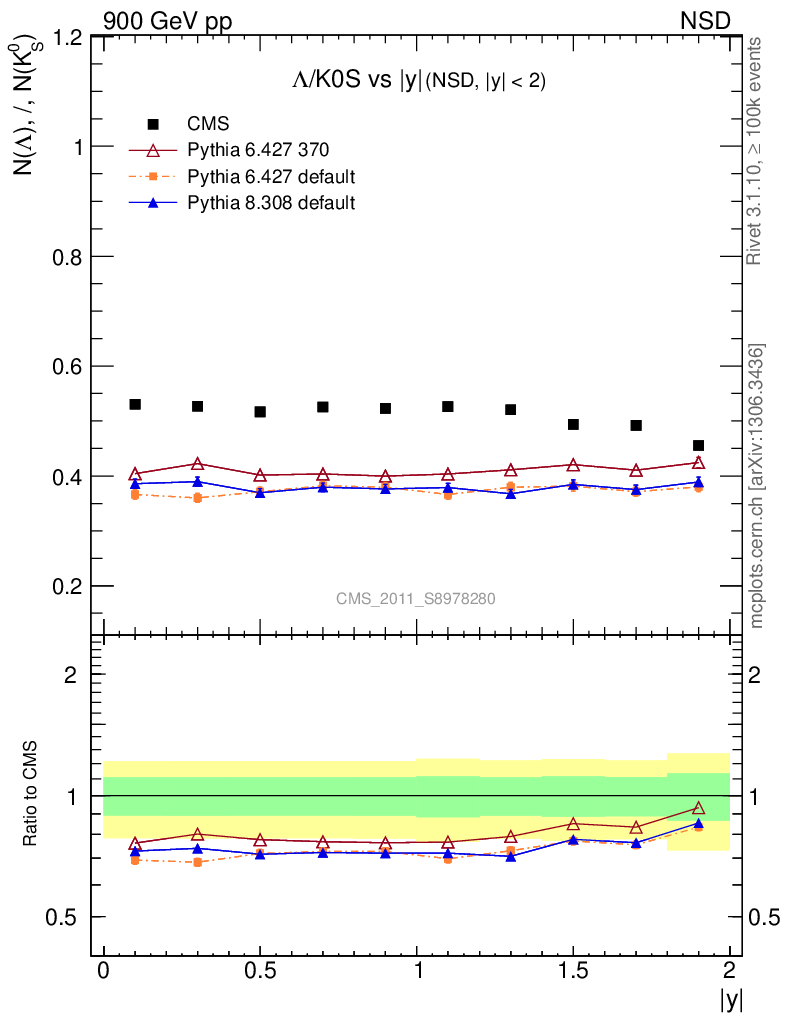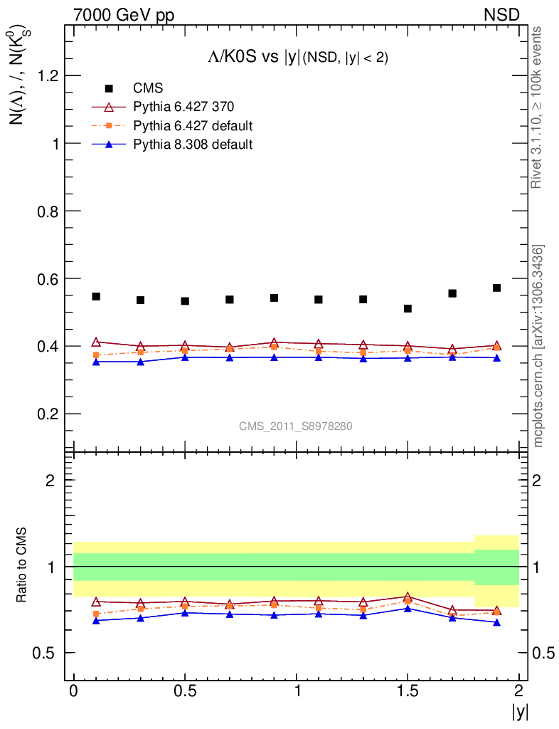 Soft QCD (nsd only) : Identified Particles : Ratios : Λ/K0S vs |y|