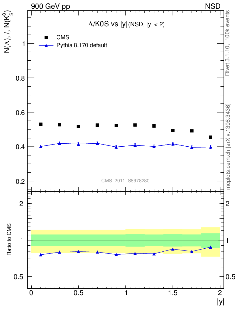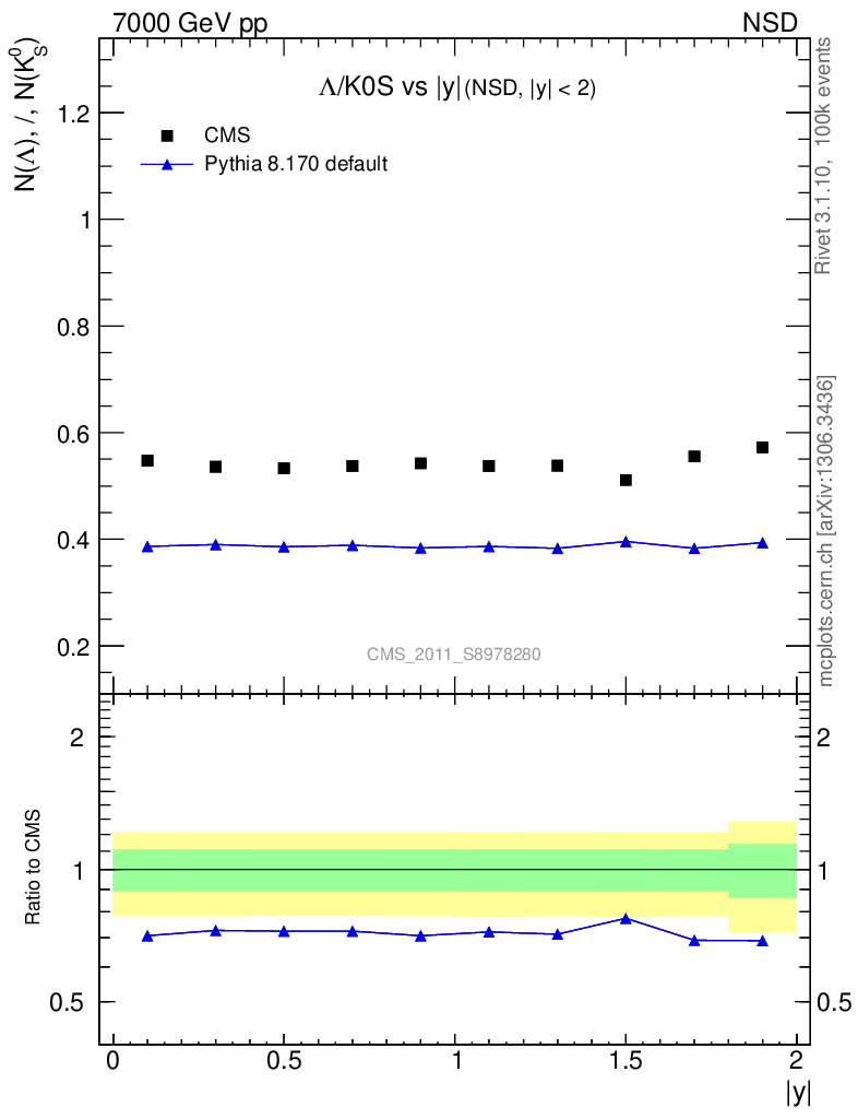 Soft QCD (nsd only) : Identified Particles : Ratios : Λ/K0S vs |y|