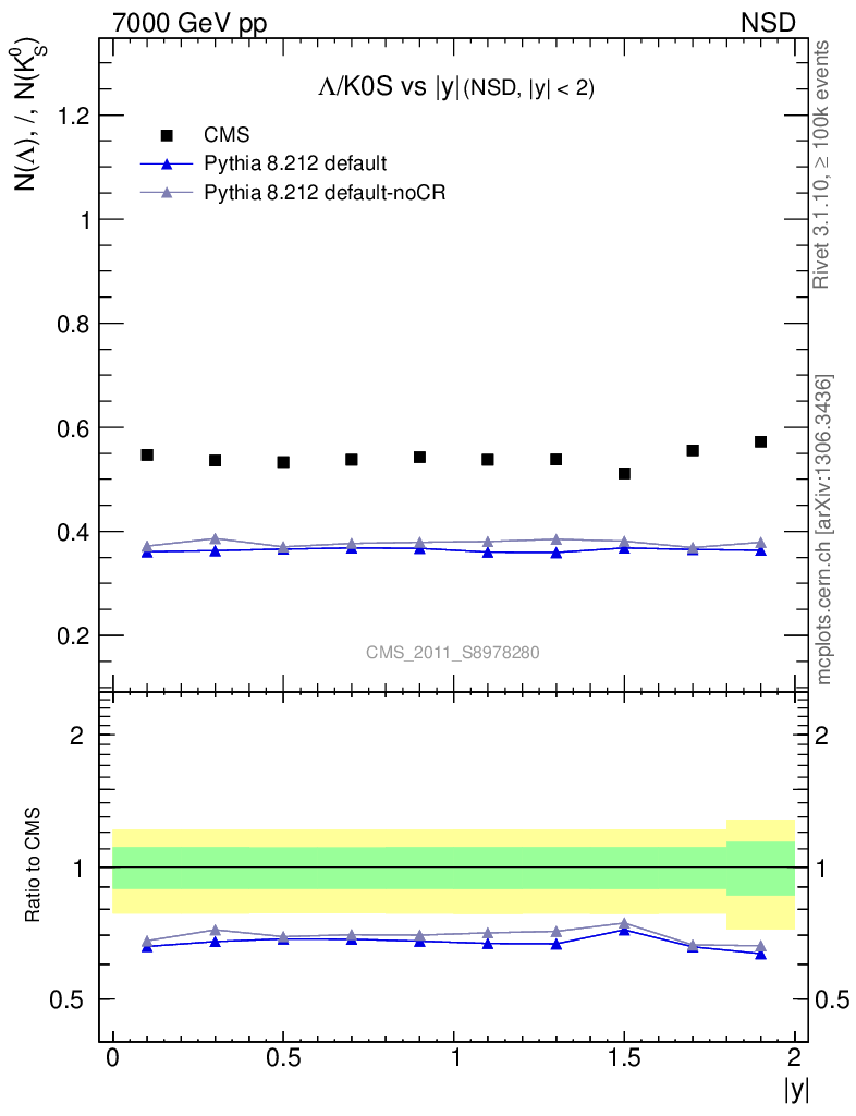 Soft QCD (nsd only) : Identified Particles : Ratios : Λ/K0S vs |y|