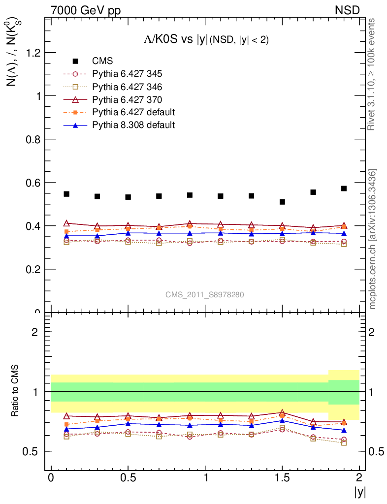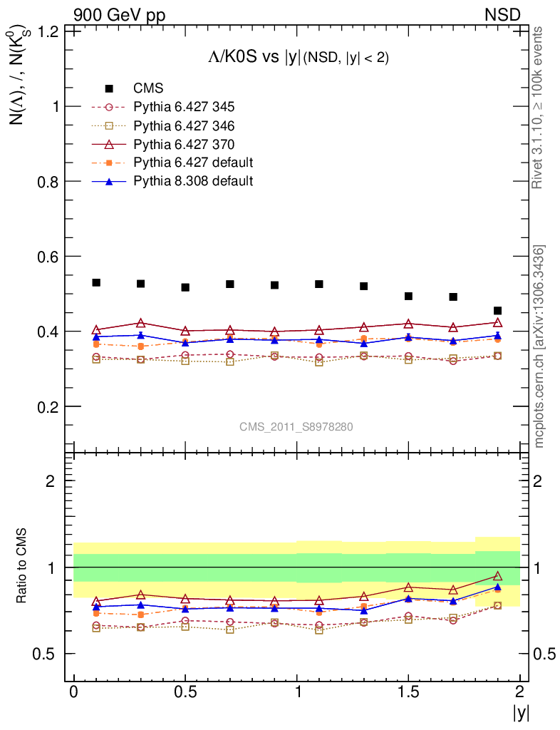 Soft QCD (nsd only) : Identified Particles : Ratios : Λ/K0S vs |y|