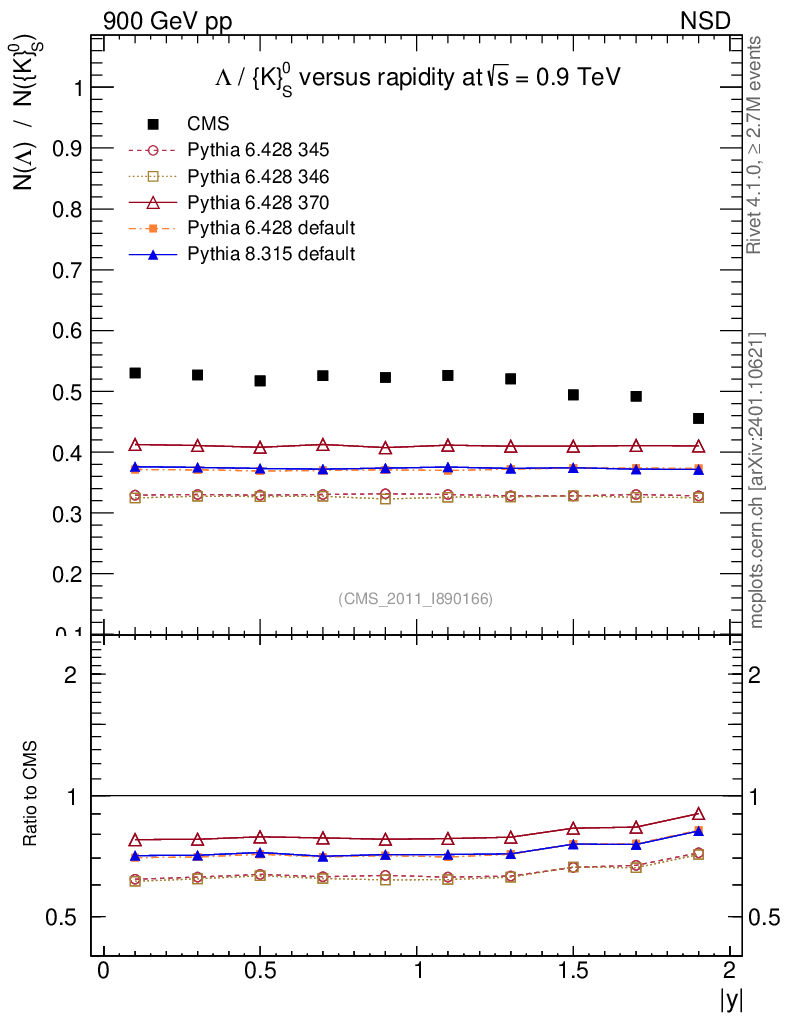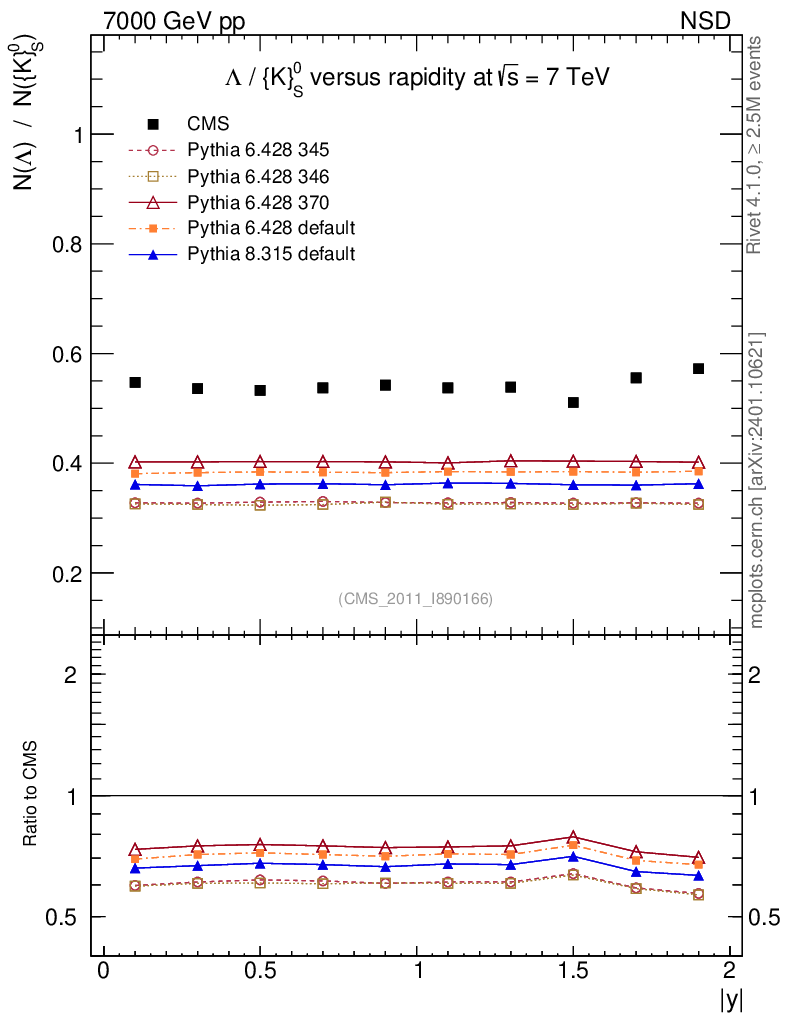 Soft QCD (nsd only) : Identified Particles : Ratios : Λ/K0S vs |y|