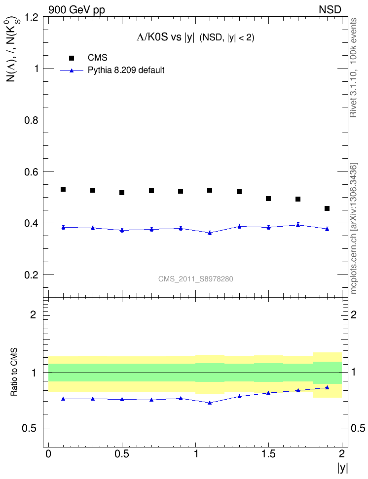 Soft QCD (nsd only) : Identified Particles : Ratios : Λ/K0S vs |y|