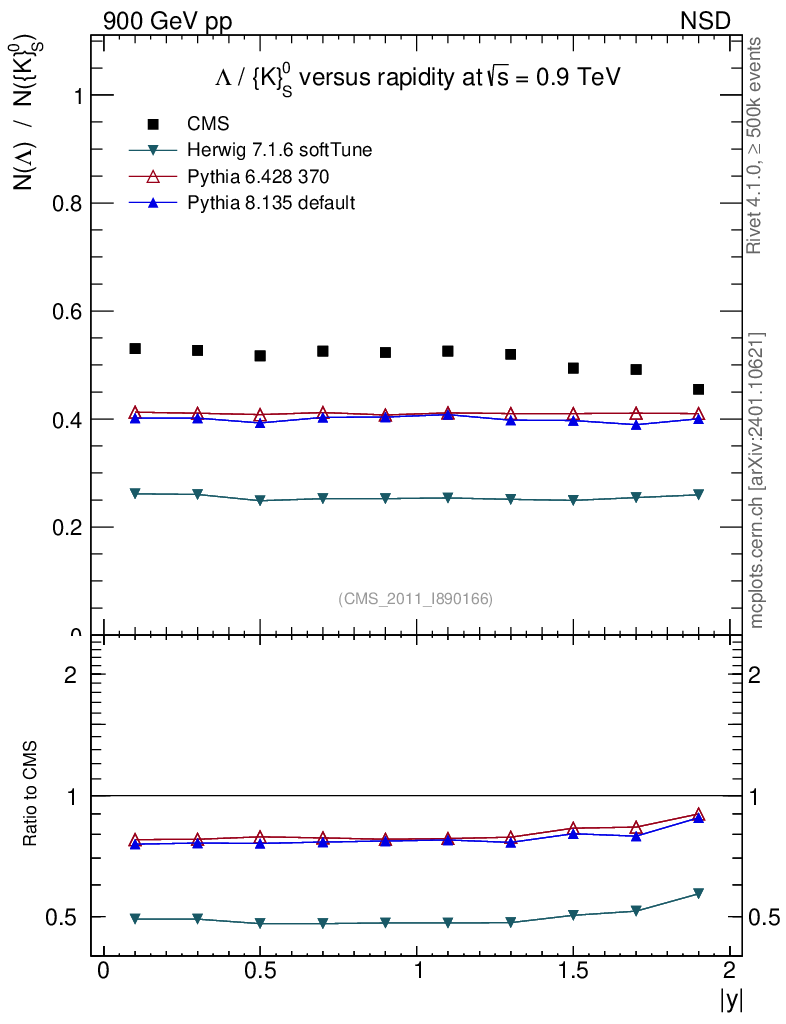 Soft QCD (nsd only) : Identified Particles : Ratios : Λ/K0S vs |y|