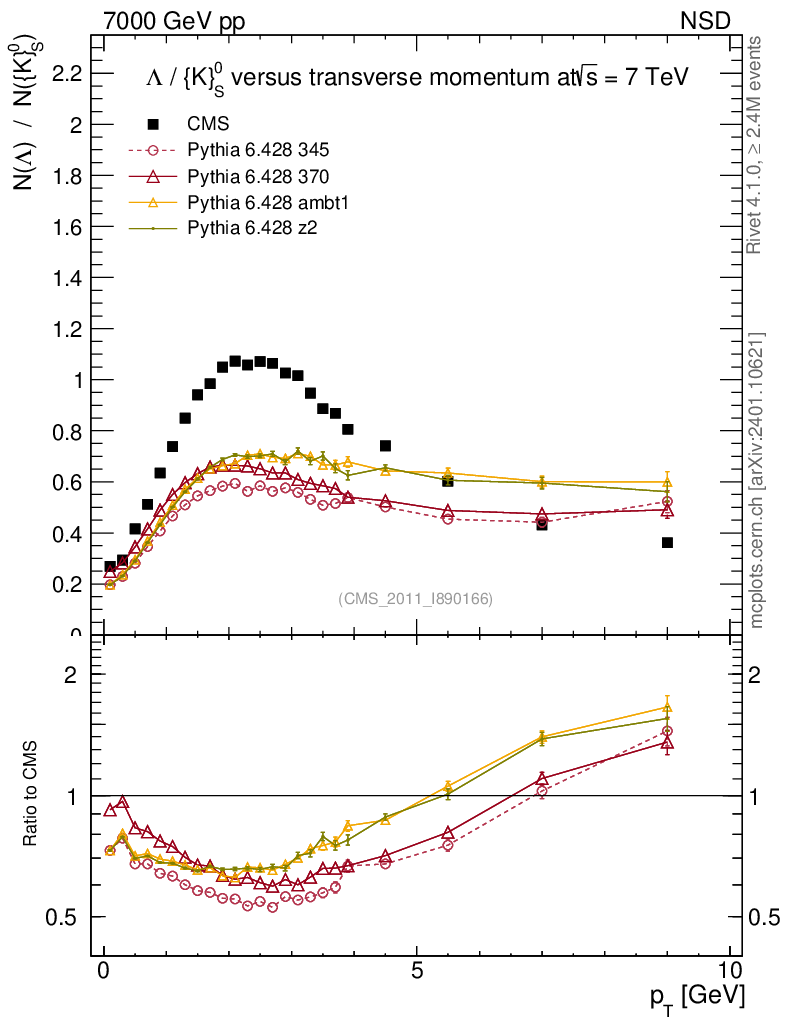 Soft QCD (nsd only) : Identified Particles : Ratios : Λ/K0S vs pT