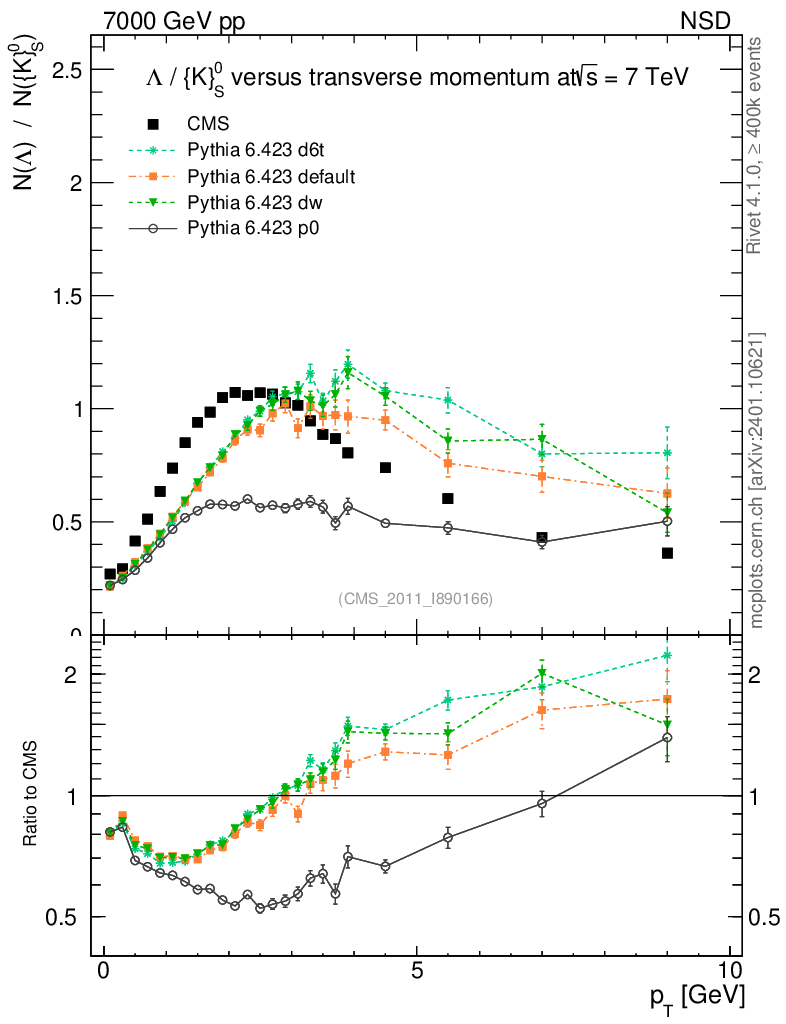 Soft QCD (nsd only) : Identified Particles : Ratios : Λ/K0S vs pT