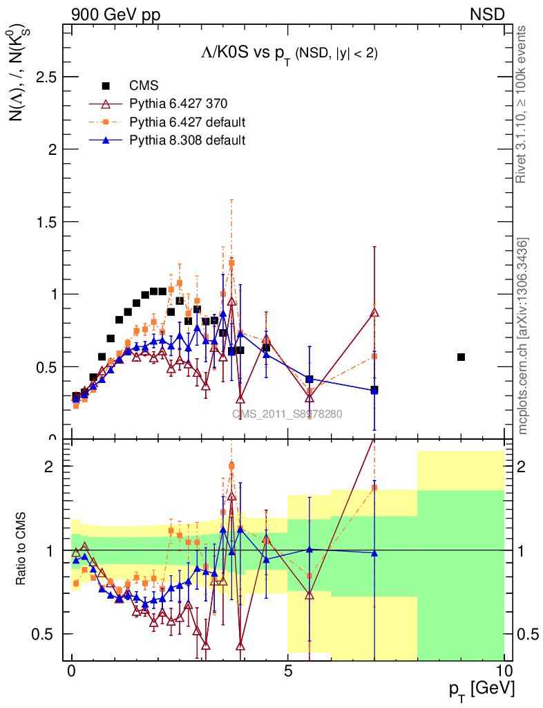Soft QCD (nsd only) : Identified Particles : Ratios : Λ/K0S vs pT