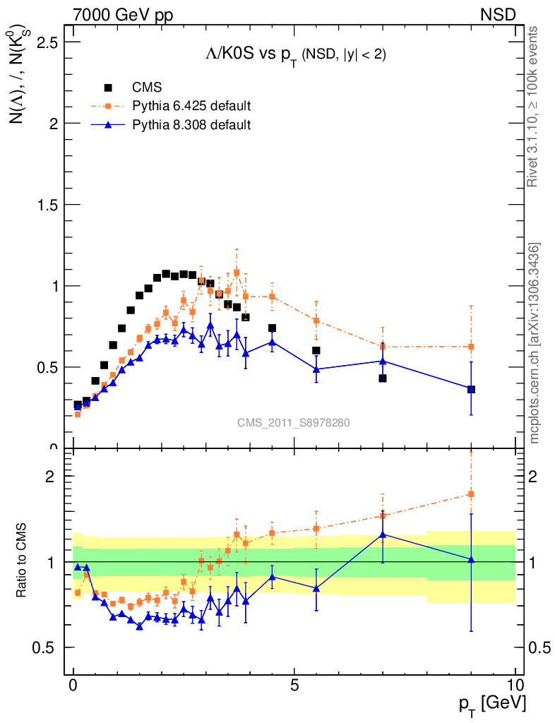 Soft QCD (nsd only) : Identified Particles : Ratios : Λ/K0S vs pT