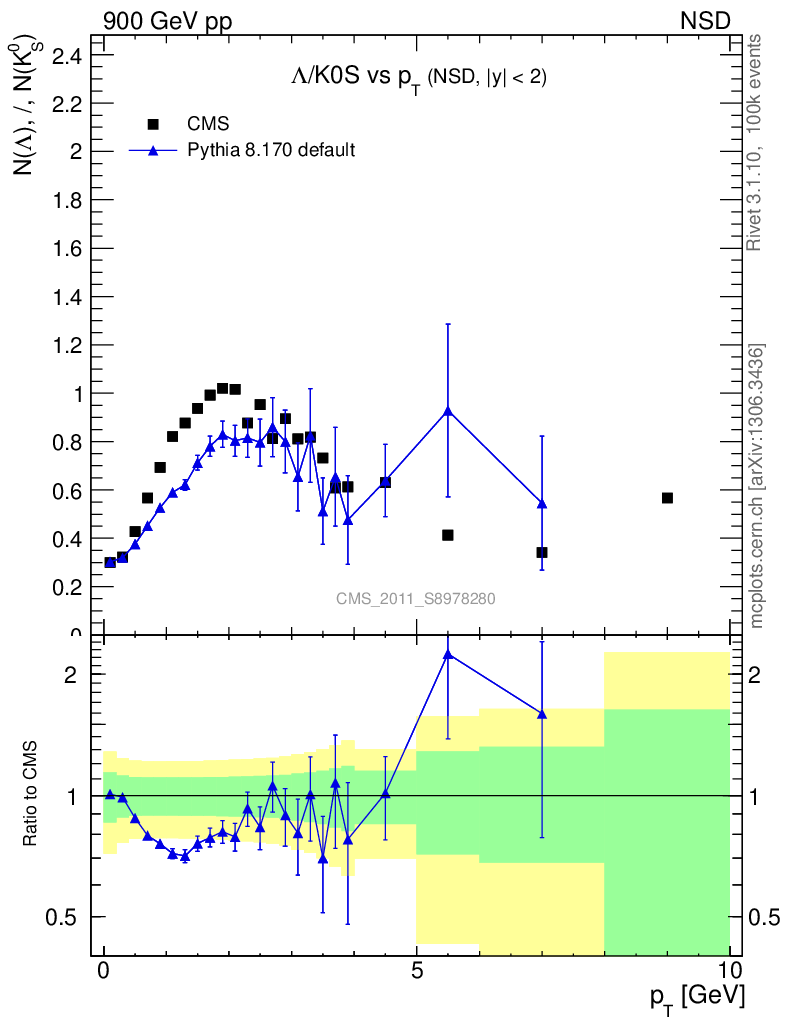 Soft QCD (nsd only) : Identified Particles : Ratios : Λ/K0S vs pT