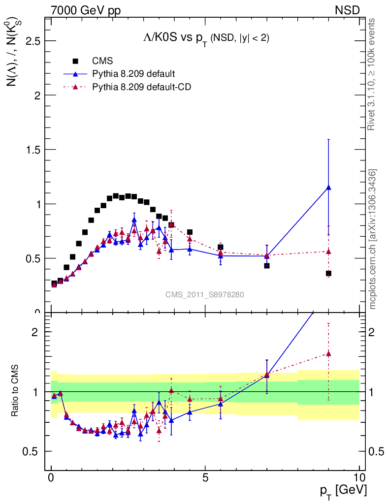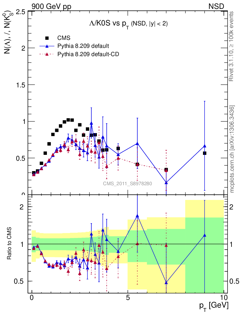 Soft QCD (nsd only) : Identified Particles : Ratios : Λ/K0S vs pT