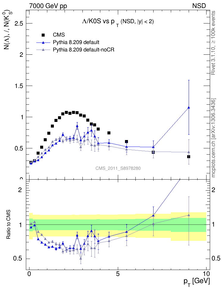 Soft QCD (nsd only) : Identified Particles : Ratios : Λ/K0S vs pT