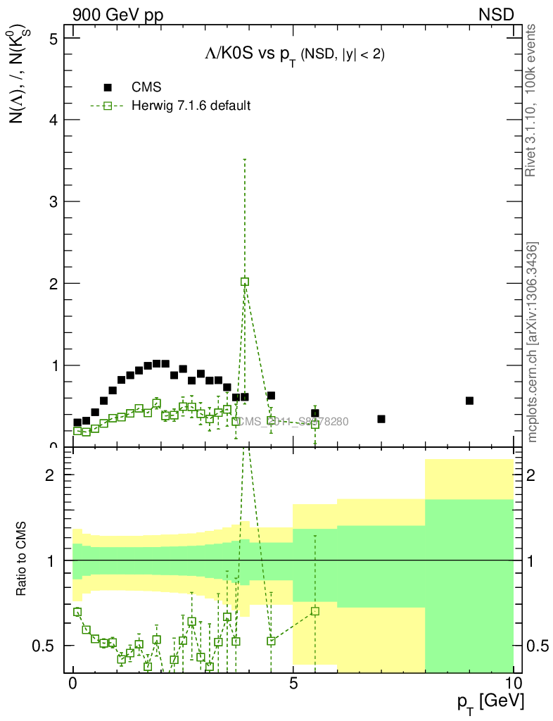 Soft QCD (nsd only) : Identified Particles : Ratios : Λ/K0S vs pT
