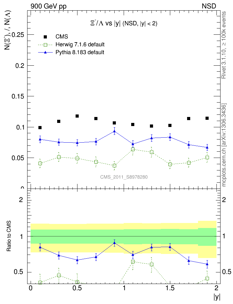 Soft QCD (nsd only) : Identified Particles : Ratios : Ξ-/Λ vs |y|