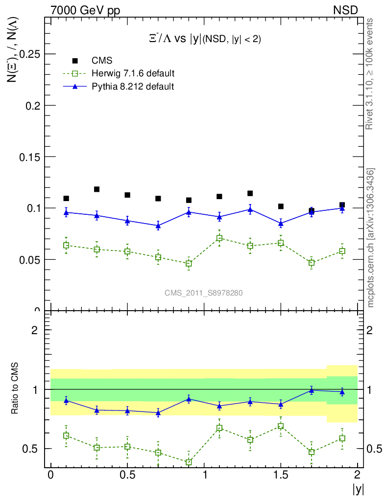 Soft QCD (nsd only) : Identified Particles : Ratios : Ξ-/Λ vs |y|