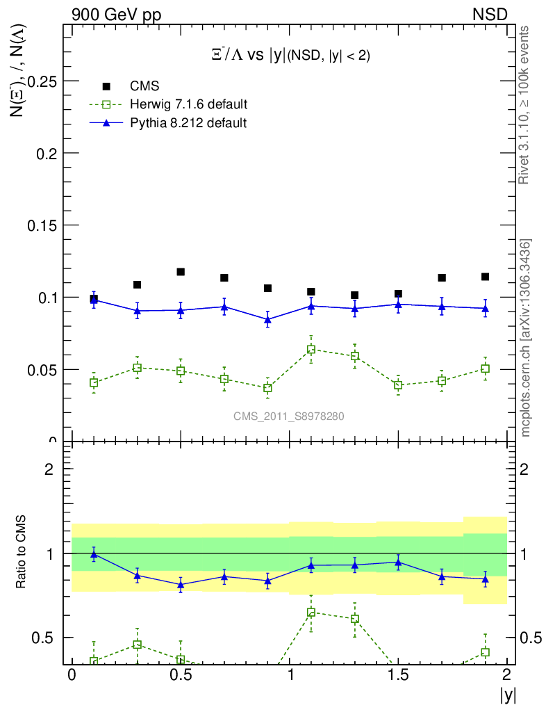 Soft QCD (nsd only) : Identified Particles : Ratios : Ξ-/Λ vs |y|