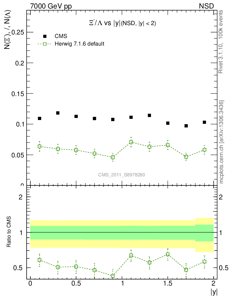 Soft QCD (nsd only) : Identified Particles : Ratios : Ξ-/Λ vs |y|