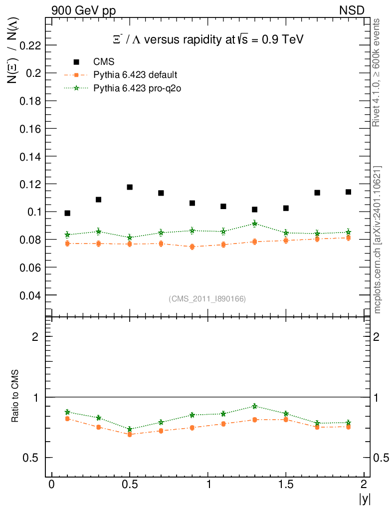 Soft QCD (nsd only) : Identified Particles : Ratios : Ξ-/Λ vs |y|
