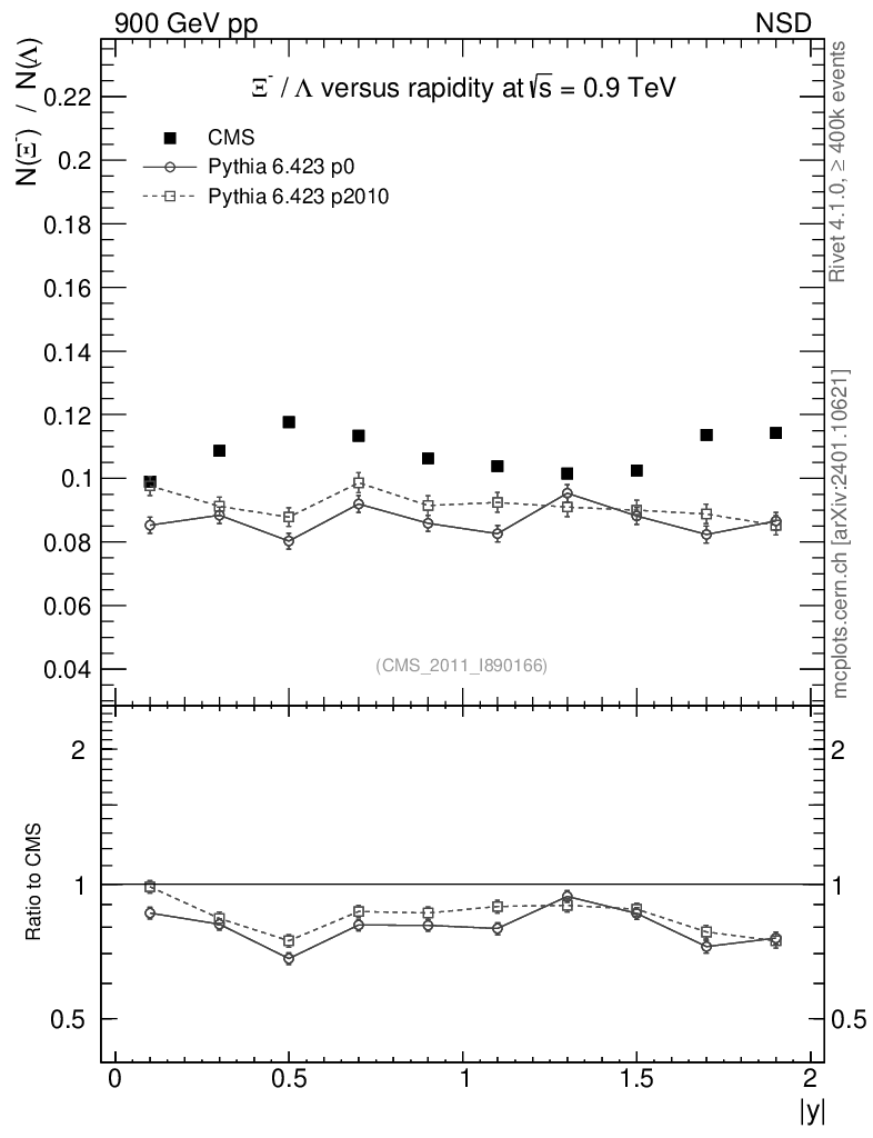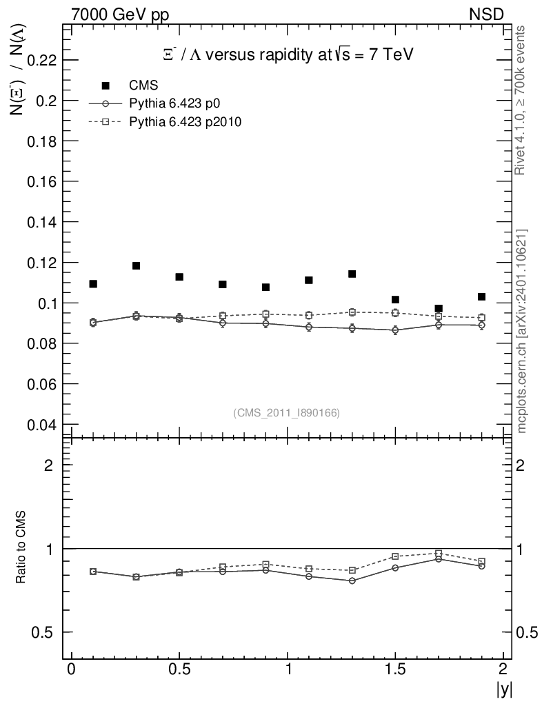 Soft QCD (nsd only) : Identified Particles : Ratios : Ξ-/Λ vs |y|