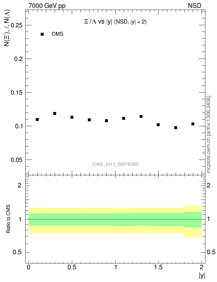 Soft QCD (nsd only) : Identified Particles : Ratios : Ξ-/Λ vs |y|