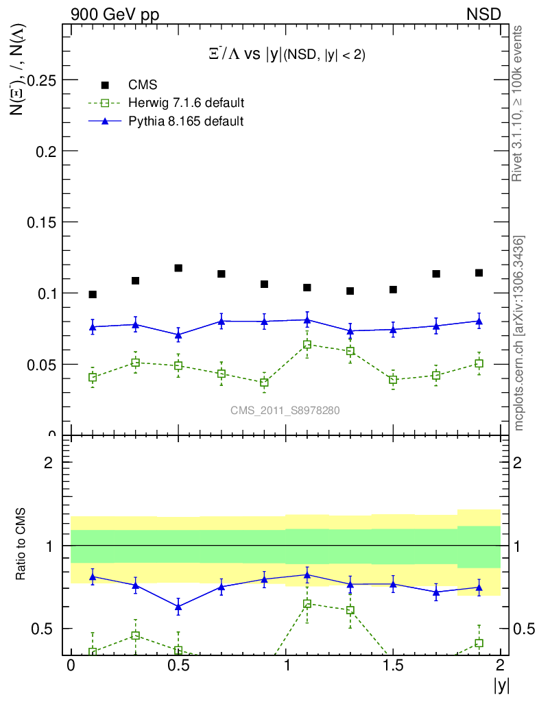 Soft QCD (nsd only) : Identified Particles : Ratios : Ξ-/Λ vs |y|