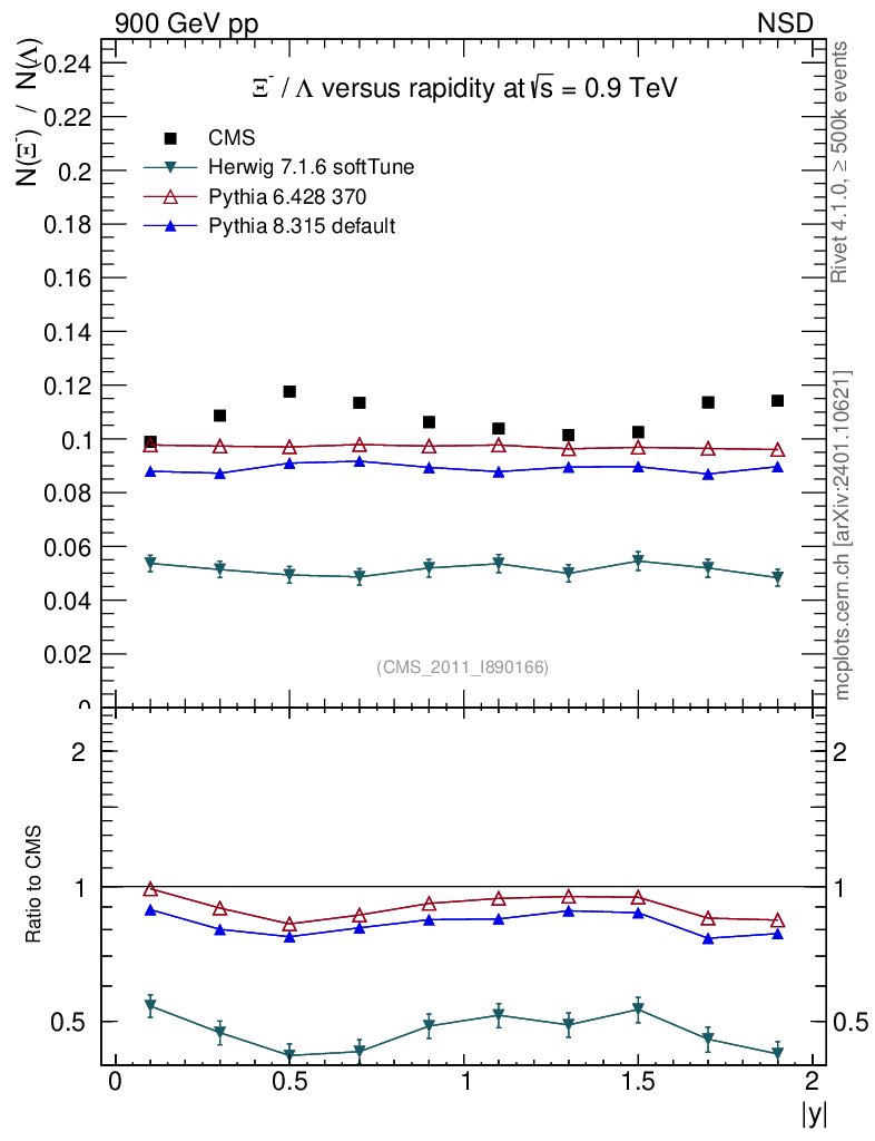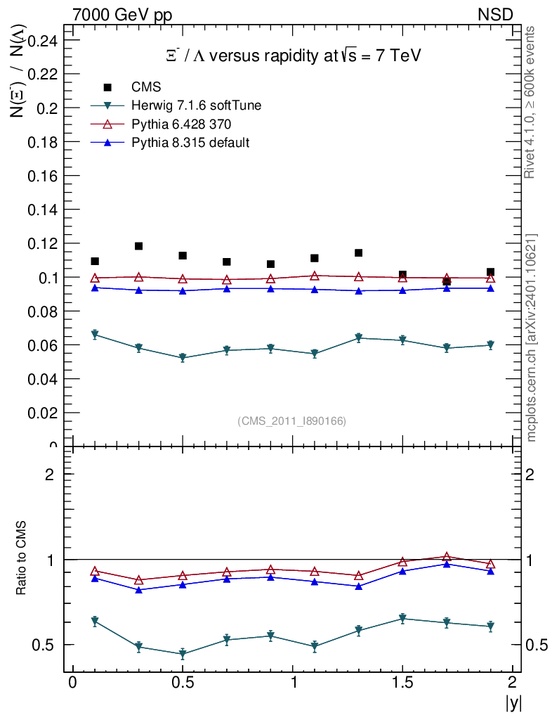 Soft QCD (nsd only) : Identified Particles : Ratios : Ξ-/Λ vs |y|