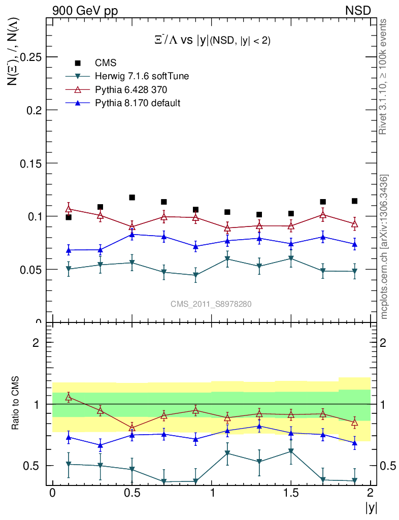 Soft QCD (nsd only) : Identified Particles : Ratios : Ξ-/Λ vs |y|