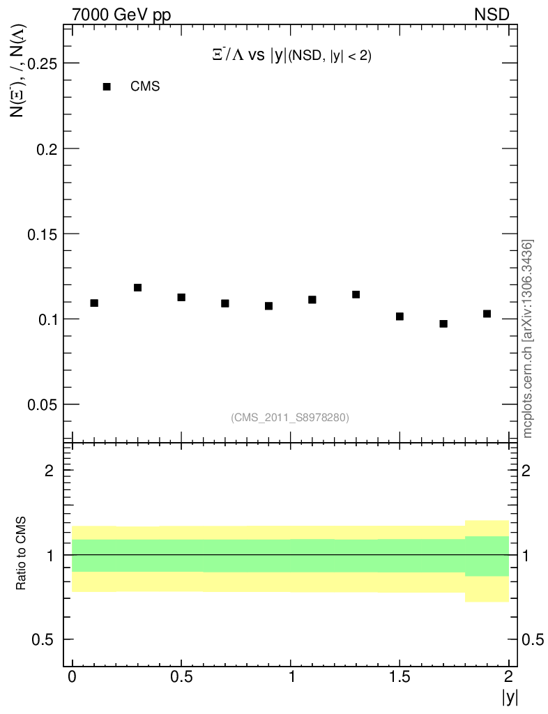 Soft QCD (nsd only) : Identified Particles : Ratios : Ξ-/Λ vs |y|